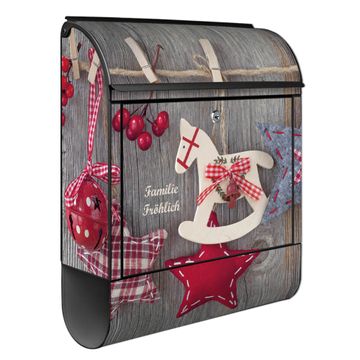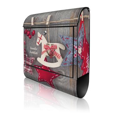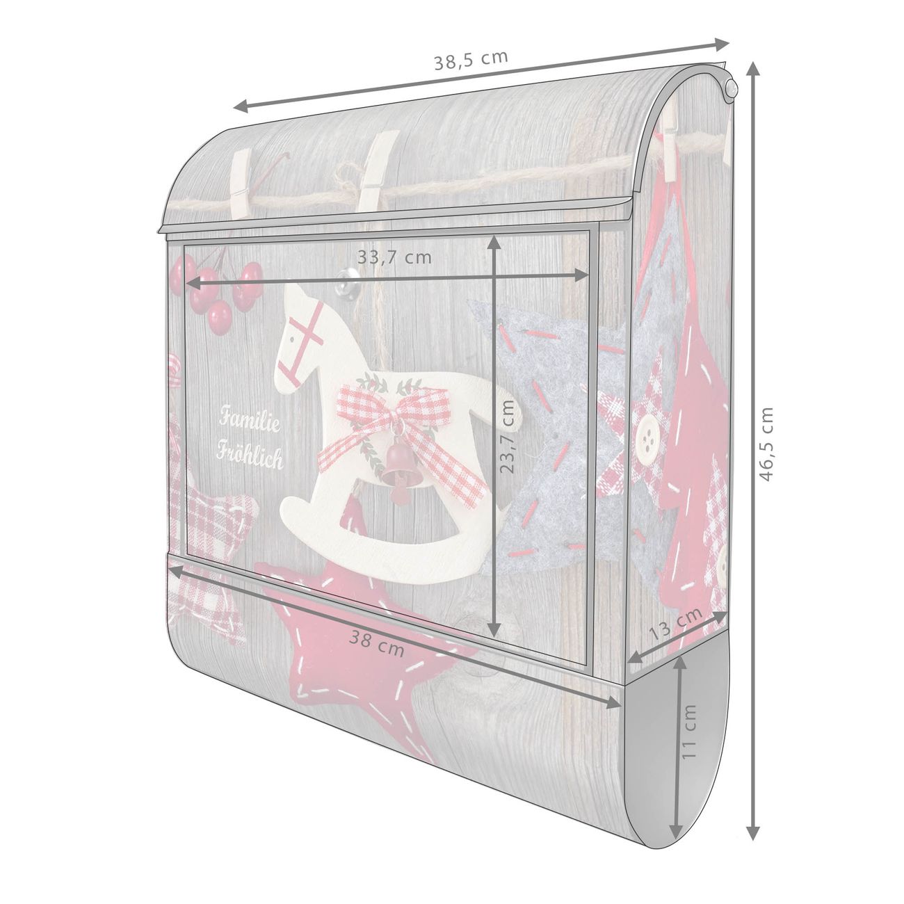 DESIGN: Der Postkasten mit Motiv Motiv Winterdekoration hat ein sehr ansprechendes und ausgefallenes Design, damit entlocken Sie Ihren Nachbarn und dem Postboten ein Lächeln. Heben Sie Sich von der tristen grauen Masse ab, ohne auf Funktionalität zu verzichten. DETAILS: Der Postkasten besteht aus pulverbeschichtetem Stahl. Er ist 38x46x12,5cm groß. Das Motiv besteht aus einer wetter- und UV-resistenten Folie, die mit einem Schutzlaminat überzogen ist, sodass der Briefkasten zusätzlich vor Kratzern geschützt ist. Der Briefkasten wird mit Montagematerial, zusätzlich zwei Schlüssel sowie einer Bohrschablone geliefert. NUTZEN: Sie können diesen Briefkasten sowohl als Wandbriefkasten montieren oder einen passenden Ständer kaufen und als Standbriefkasten einbetonieren. Die Größe bietet genügend Platz für Sendungen aller Art, der Einwurf fasst auch größere A4 Sendungen. BANJADO: Ihr Briefkasten wird in Sachsen in einer kleinen Manufaktur von Hand veredelt. Die Motivfolie ist lösungsmittelfrei und schutzlaminiert für einen langen Halt. Wir legen großen Wert auf die Verbindung von Funktionalität und Design. Sie erhalten Handarbeit aus Sachsen.