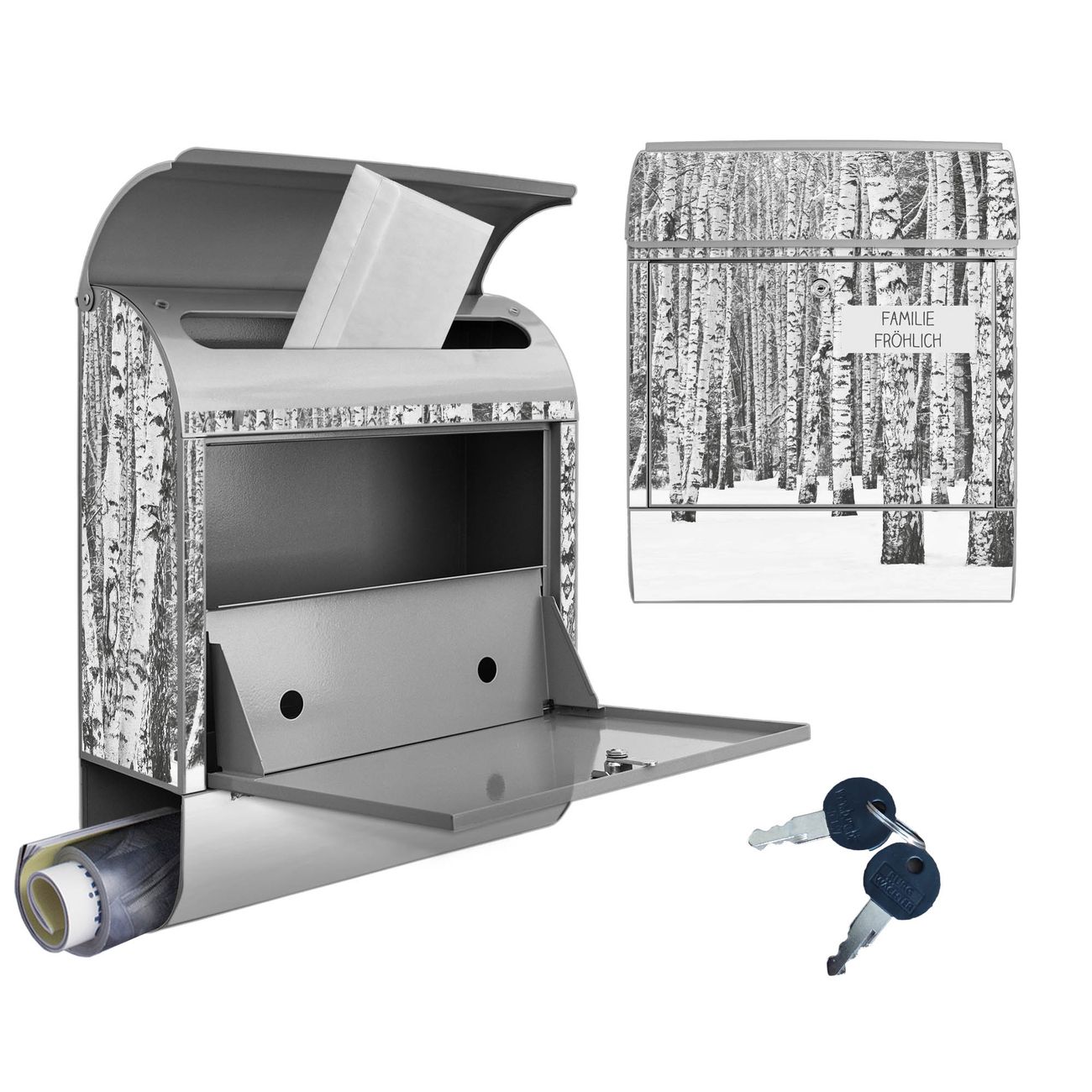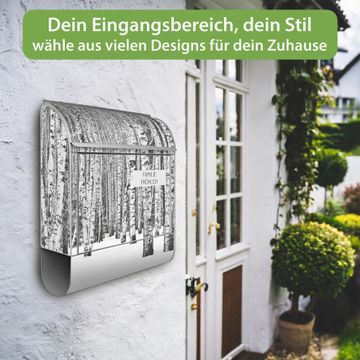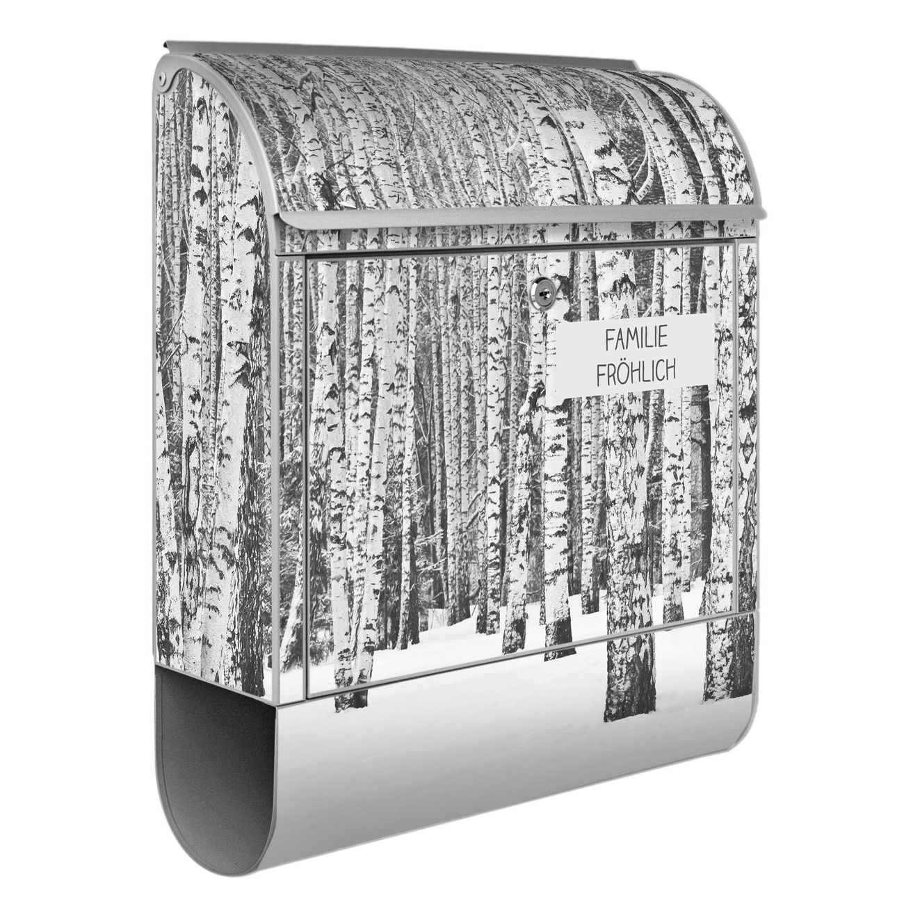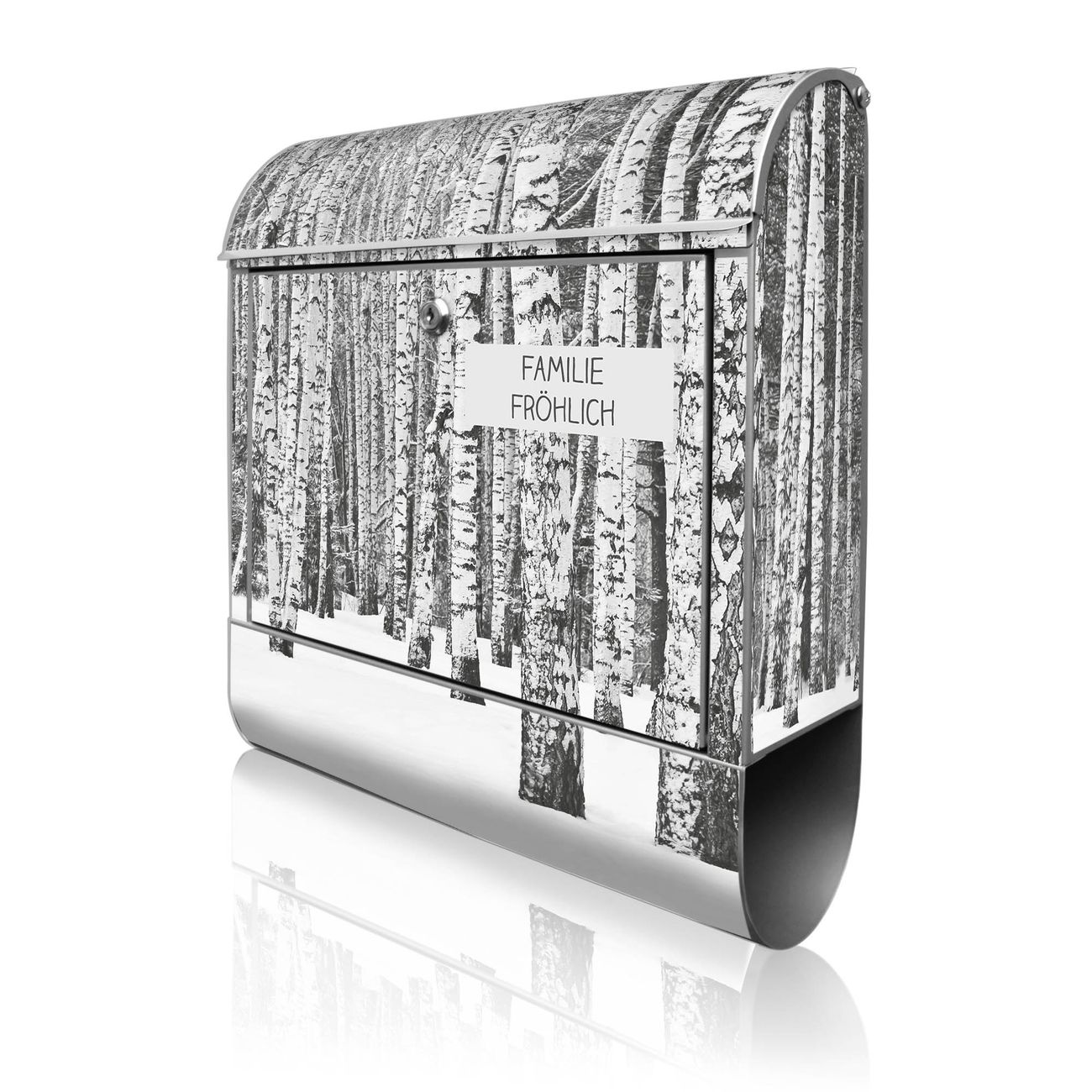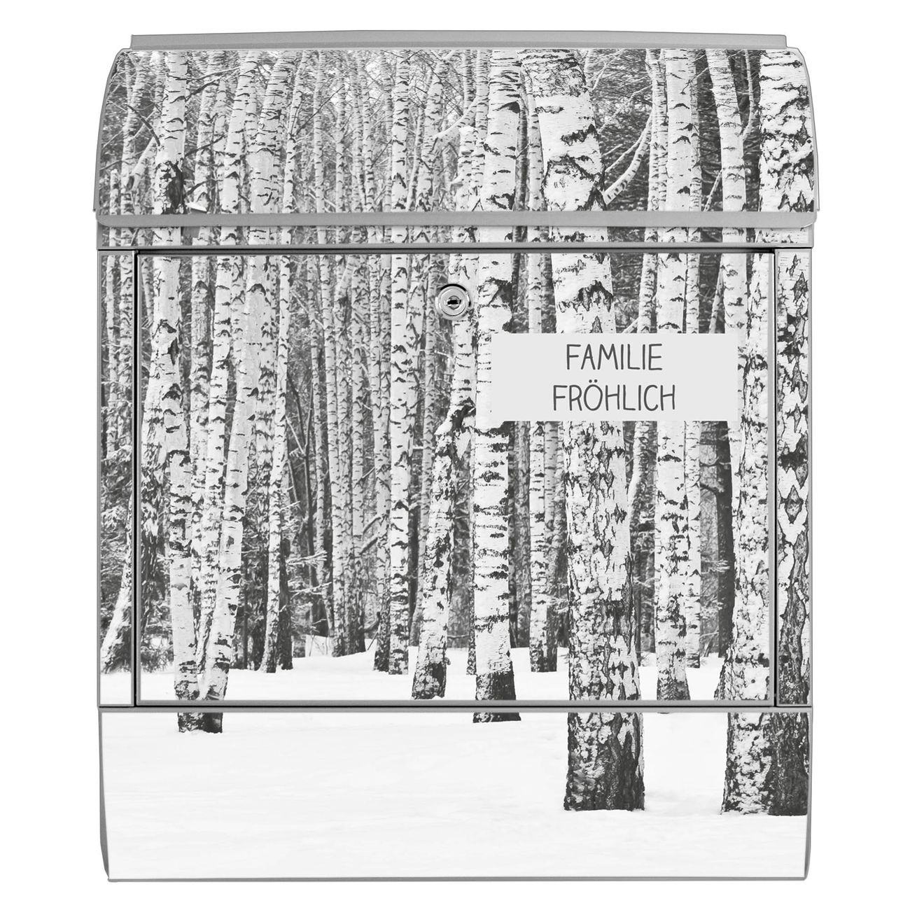 Großer Stahl Briefkasten Motiv Winterlicher Birkenwald
