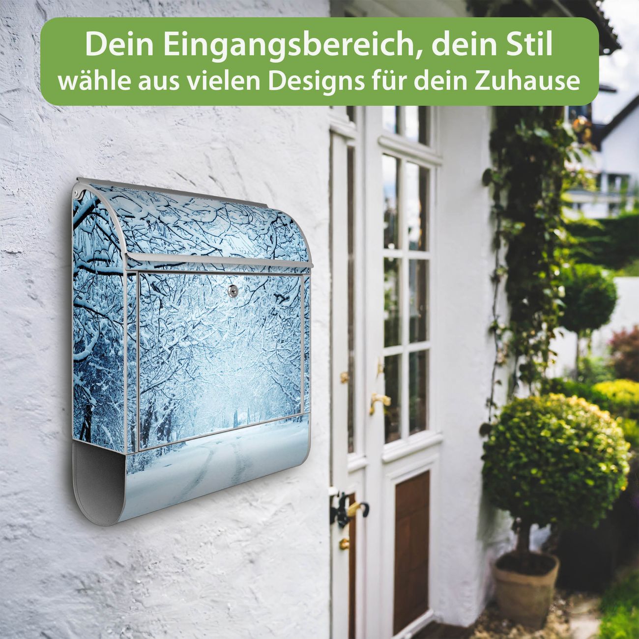 Großer Stahl Briefkasten Motiv Winterspaziergang