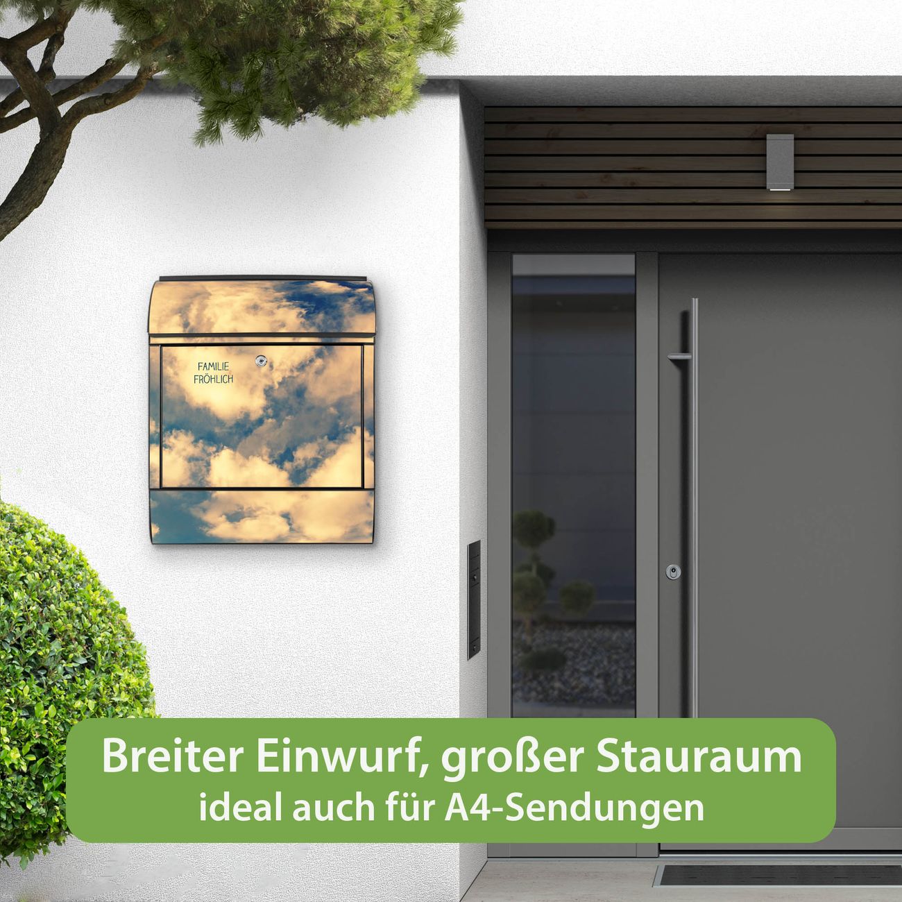 Großer Stahl Briefkasten Motiv Wolken 3