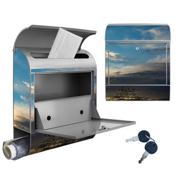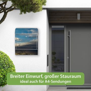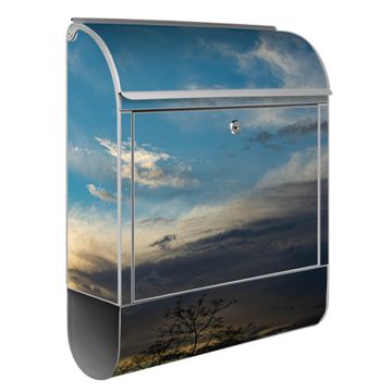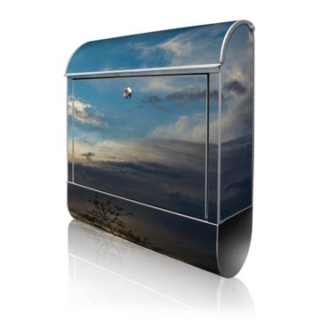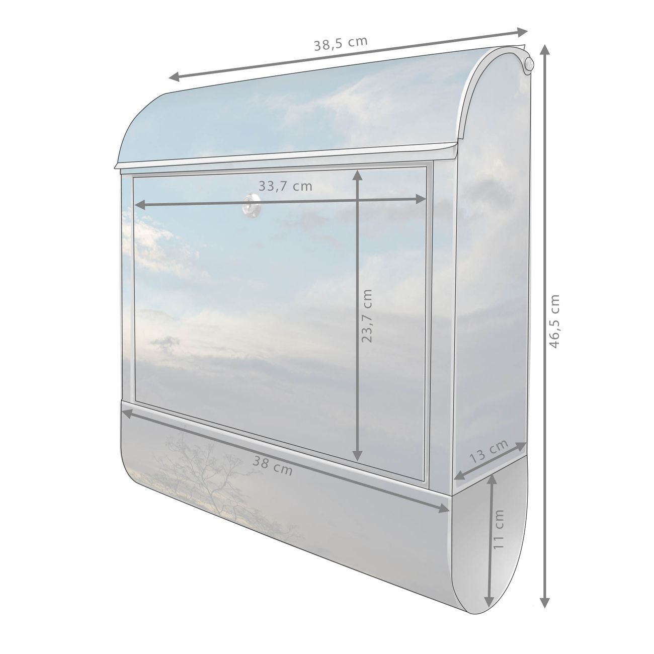 DESIGN: Der Postkasten mit Motiv Motiv Wolken 7 hat ein sehr ansprechendes und ausgefallenes Design, damit entlocken Sie Ihren Nachbarn und dem Postboten ein Lächeln. Heben Sie Sich von der tristen grauen Masse ab, ohne auf Funktionalität zu verzichten. DETAILS: Der Postkasten besteht aus pulverbeschichtetem Stahl. Er ist 38x46x12,5cm groß. Das Motiv besteht aus einer wetter- und UV-resistenten Folie, die mit einem Schutzlaminat überzogen ist, sodass der Briefkasten zusätzlich vor Kratzern geschützt ist. Der Briefkasten wird mit Montagematerial, zusätzlich zwei Schlüssel sowie einer Bohrschablone geliefert. NUTZEN: Sie können diesen Briefkasten sowohl als Wandbriefkasten montieren oder einen passenden Ständer kaufen und als Standbriefkasten einbetonieren. Die Größe bietet genügend Platz für Sendungen aller Art, der Einwurf fasst auch größere A4 Sendungen. BANJADO: Ihr Briefkasten wird in Sachsen in einer kleinen Manufaktur von Hand veredelt. Die Motivfolie ist lösungsmittelfrei und schutzlaminiert für einen langen Halt. Wir legen großen Wert auf die Verbindung von Funktionalität und Design. Sie erhalten Handarbeit aus Sachsen.
