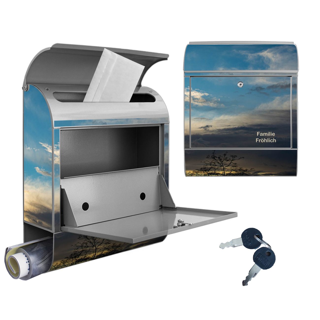 Großer Stahl Briefkasten Motiv Wolken 7