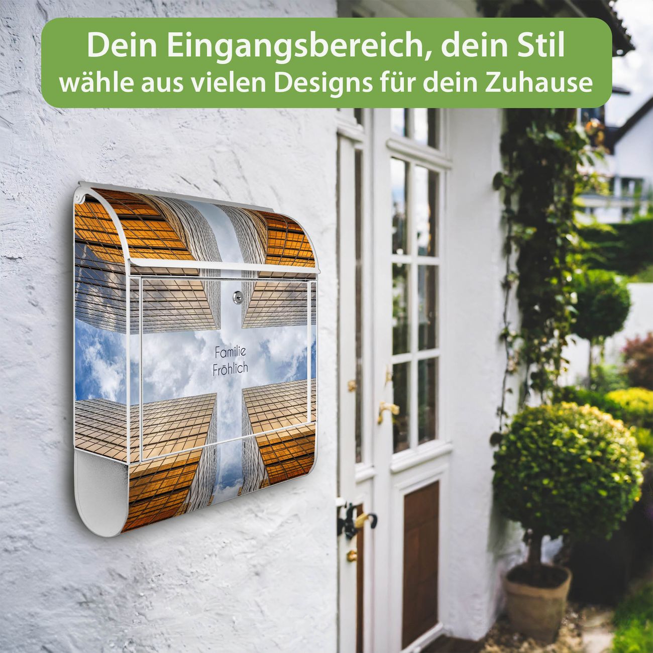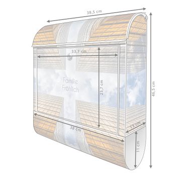 DESIGN: Der Postkasten mit Motiv Motiv Wolkenkratzer 2 hat ein sehr ansprechendes und ausgefallenes Design, damit entlocken Sie Ihren Nachbarn und dem Postboten ein Lächeln. Heben Sie Sich von der tristen grauen Masse ab, ohne auf Funktionalität zu verzichten. DETAILS: Der Postkasten besteht aus pulverbeschichtetem Stahl. Er ist 38x46x12,5cm groß. Das Motiv besteht aus einer wetter- und UV-resistenten Folie, die mit einem Schutzlaminat überzogen ist, sodass der Briefkasten zusätzlich vor Kratzern geschützt ist. Der Briefkasten wird mit Montagematerial, zusätzlich zwei Schlüssel sowie einer Bohrschablone geliefert. NUTZEN: Sie können diesen Briefkasten sowohl als Wandbriefkasten montieren oder einen passenden Ständer kaufen und als Standbriefkasten einbetonieren. Die Größe bietet genügend Platz für Sendungen aller Art, der Einwurf fasst auch größere A4 Sendungen. BANJADO: Ihr Briefkasten wird in Sachsen in einer kleinen Manufaktur von Hand veredelt. Die Motivfolie ist lösungsmittelfrei und schutzlaminiert für einen langen Halt. Wir legen großen Wert auf die Verbindung von Funktionalität und Design. Sie erhalten Handarbeit aus Sachsen.