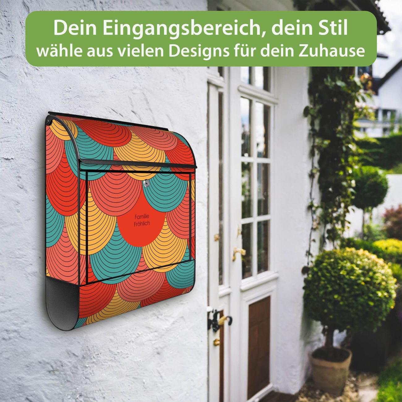 DESIGN: Der Postkasten mit Motiv Motiv Wolkenstore hat ein sehr ansprechendes und ausgefallenes Design, damit entlocken Sie Ihren Nachbarn und dem Postboten ein Lächeln. Heben Sie Sich von der tristen grauen Masse ab, ohne auf Funktionalität zu verzichten. DETAILS: Der Postkasten besteht aus pulverbeschichtetem Stahl. Er ist 38x46x12,5cm groß. Das Motiv besteht aus einer wetter- und UV-resistenten Folie, die mit einem Schutzlaminat überzogen ist, sodass der Briefkasten zusätzlich vor Kratzern geschützt ist. Der Briefkasten wird mit Montagematerial, zusätzlich zwei Schlüssel sowie einer Bohrschablone geliefert. NUTZEN: Sie können diesen Briefkasten sowohl als Wandbriefkasten montieren oder einen passenden Ständer kaufen und als Standbriefkasten einbetonieren. Die Größe bietet genügend Platz für Sendungen aller Art, der Einwurf fasst auch größere A4 Sendungen. BANJADO: Ihr Briefkasten wird in Sachsen in einer kleinen Manufaktur von Hand veredelt. Die Motivfolie ist lösungsmittelfrei und schutzlaminiert für einen langen Halt. Wir legen großen Wert auf die Verbindung von Funktionalität und Design. Sie erhalten Handarbeit aus Sachsen.