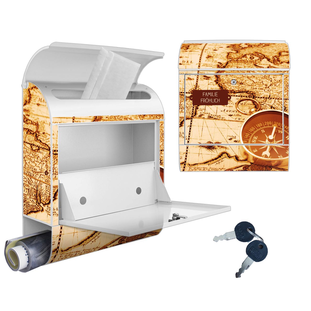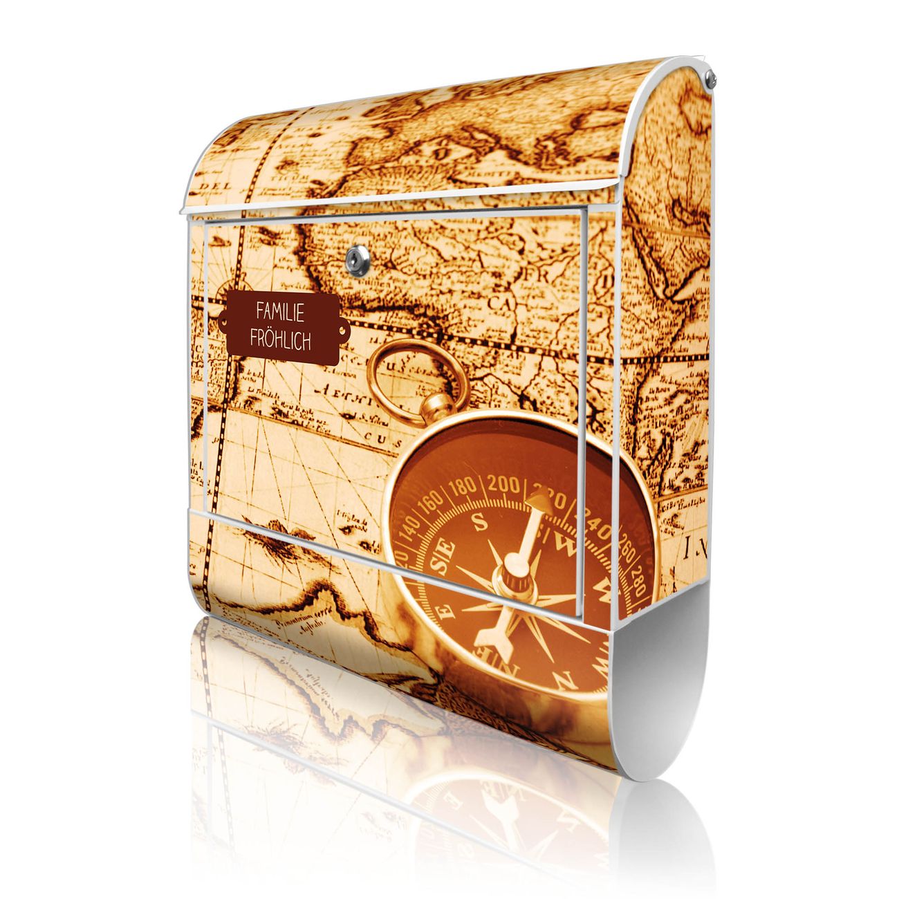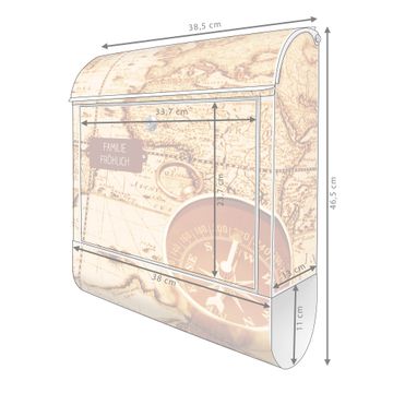 Großer Stahl Briefkasten Motiv World Map