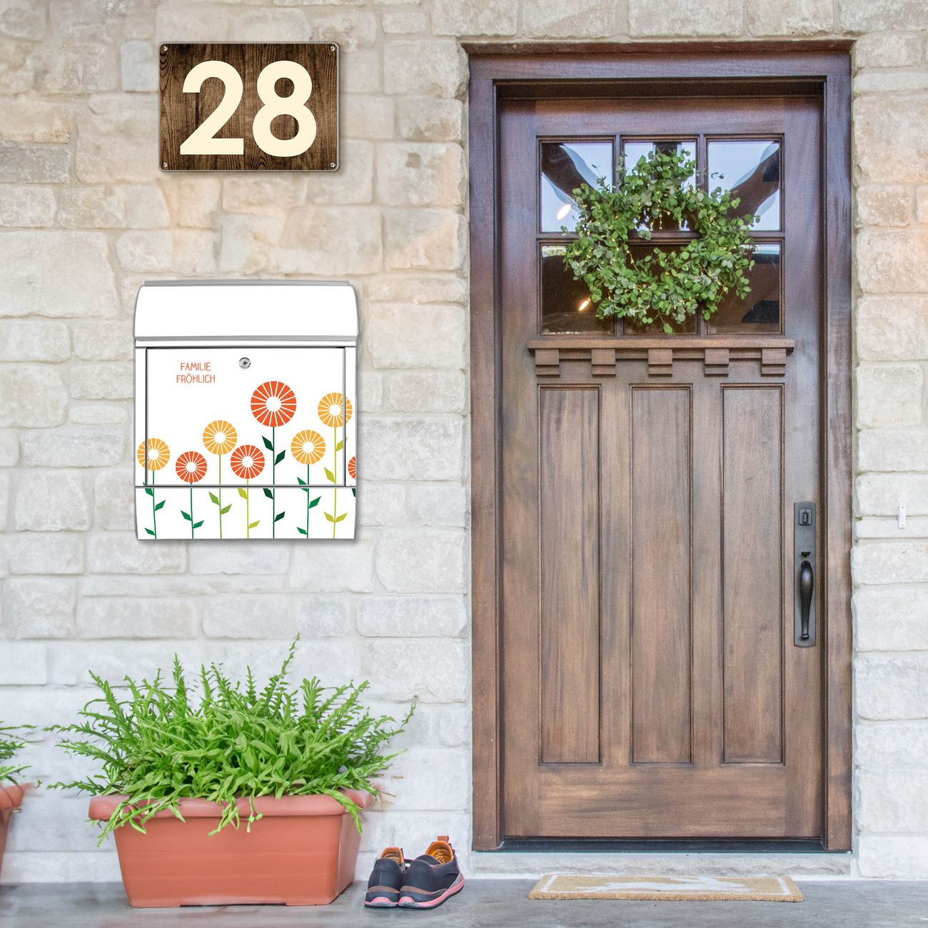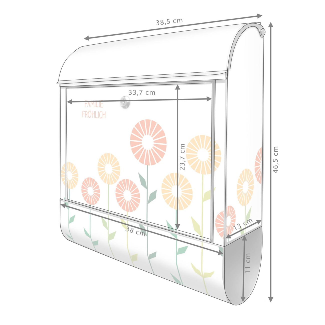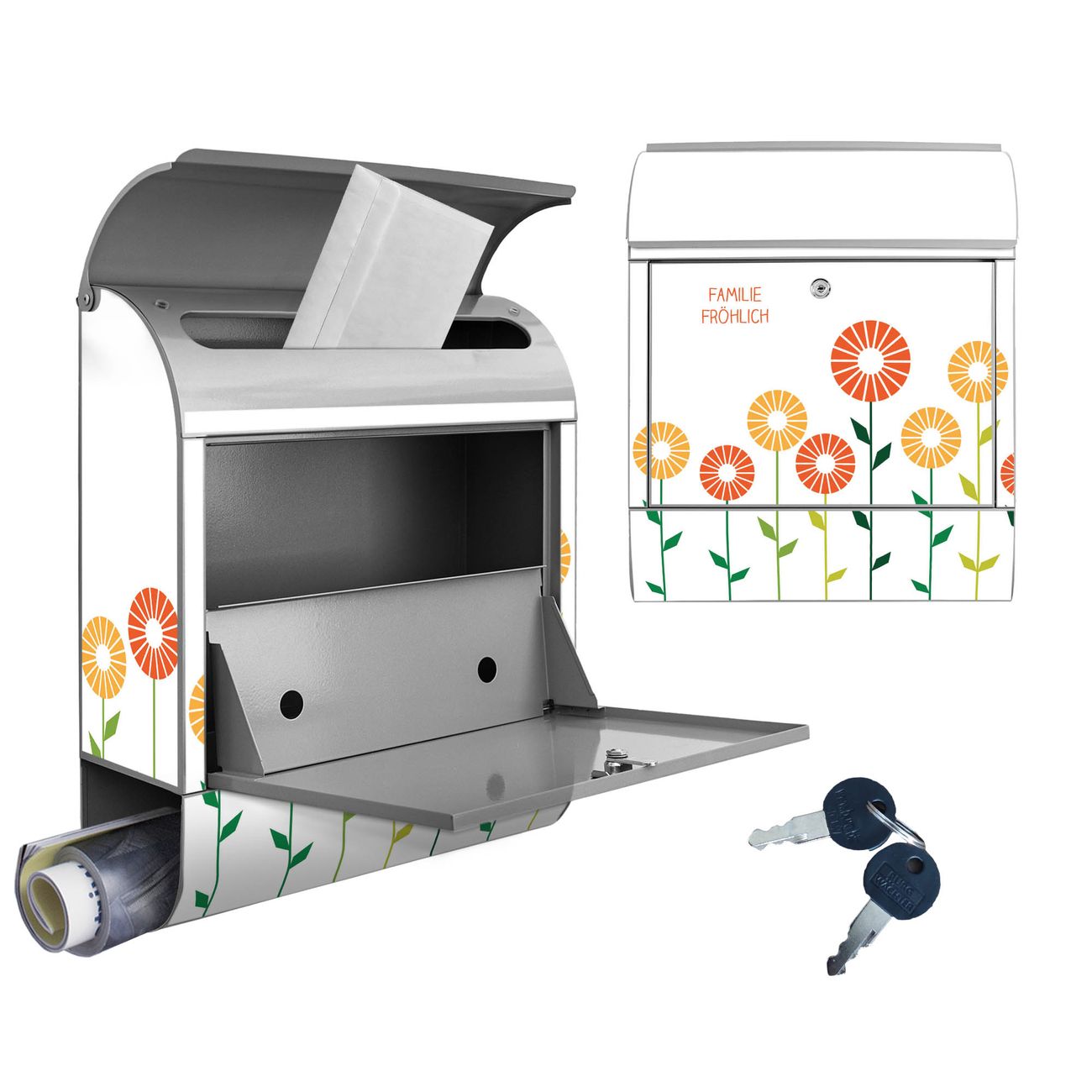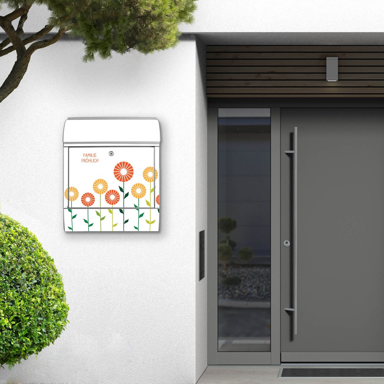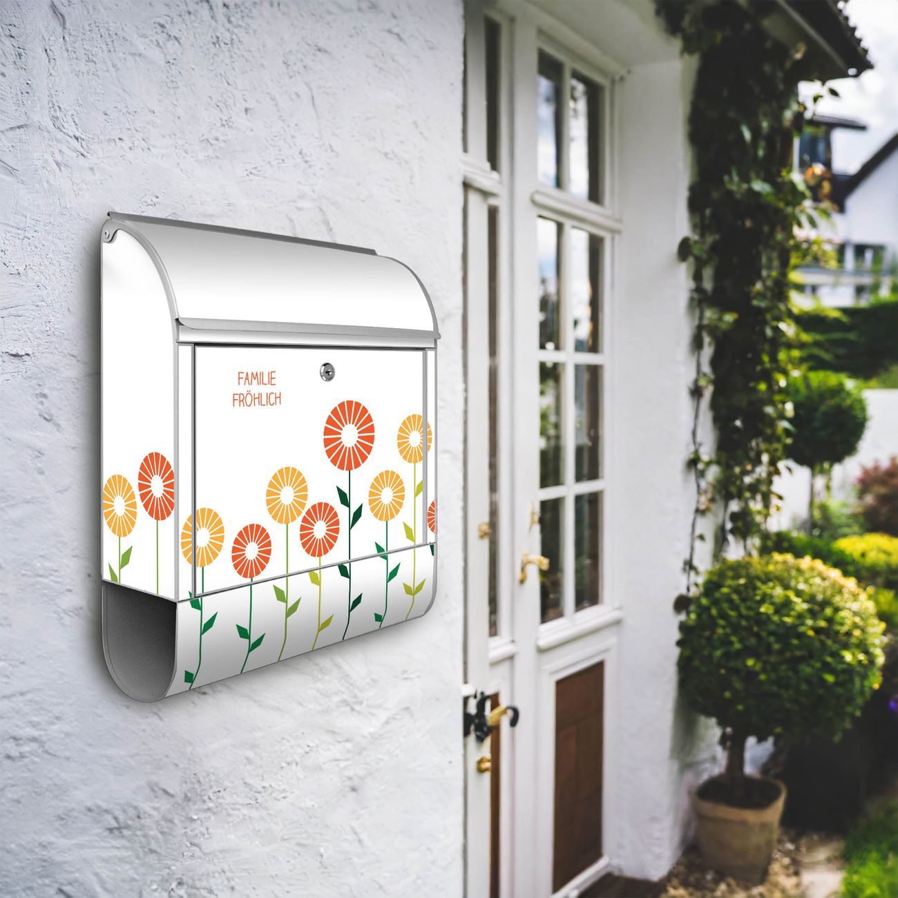 Großer Stahl Briefkasten WT Abstrakte Margeriten