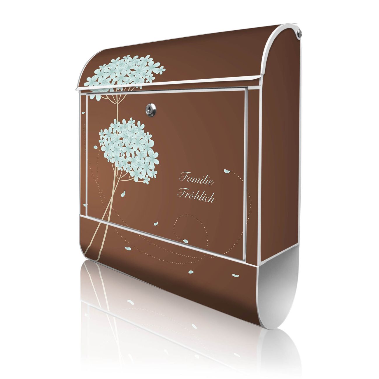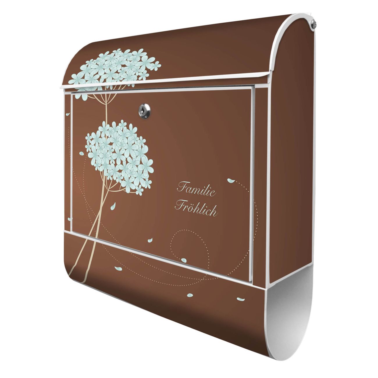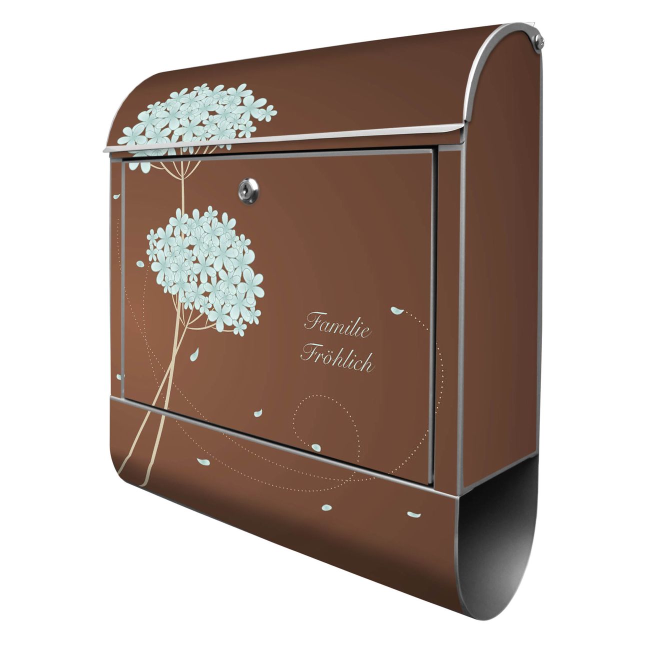 Großer Stahl Briefkasten WT Blaue Hortensie