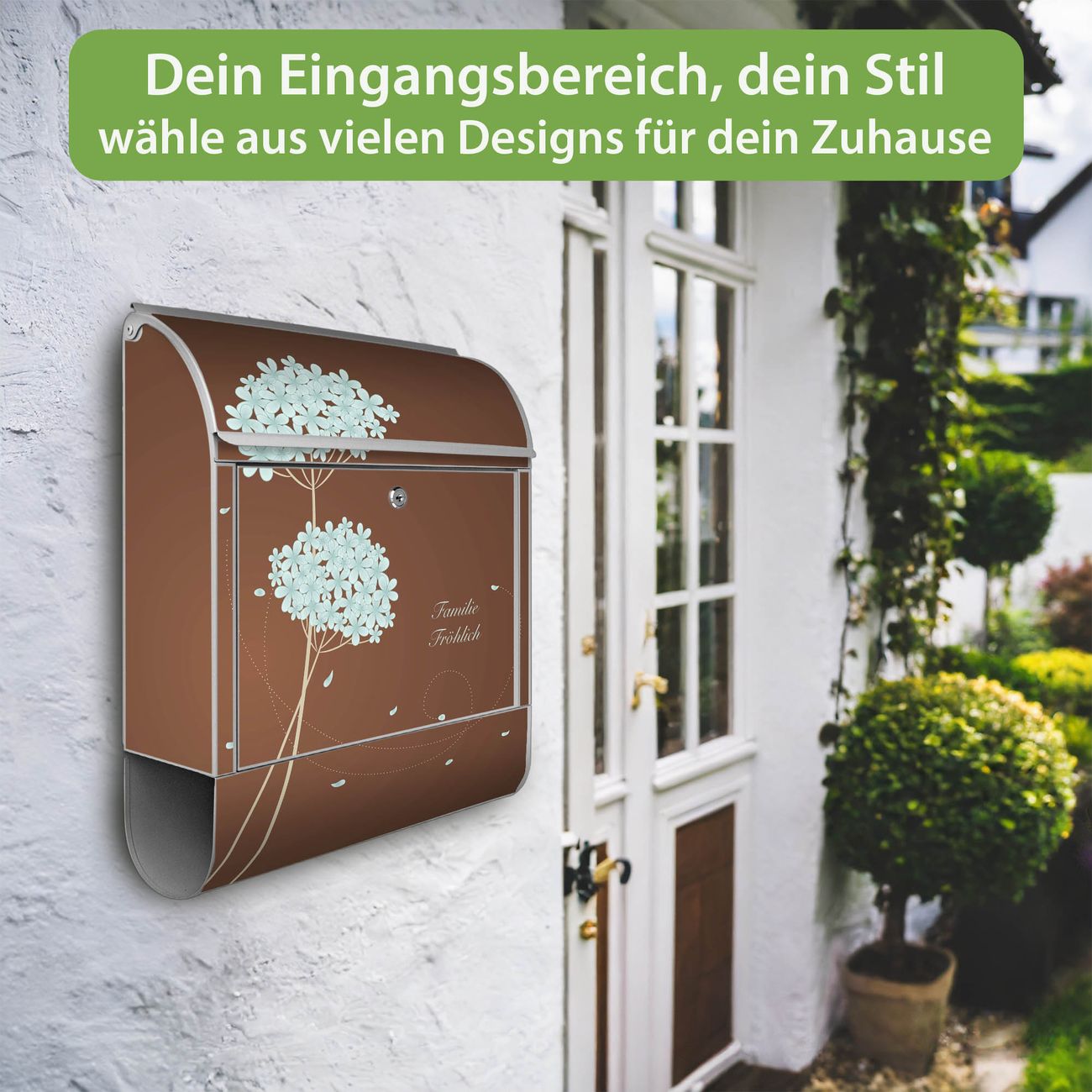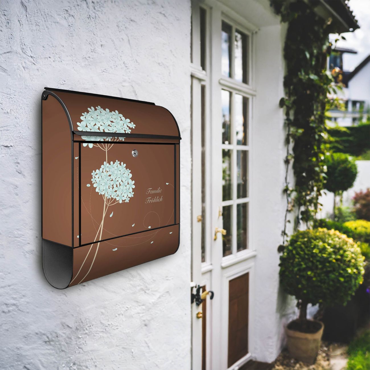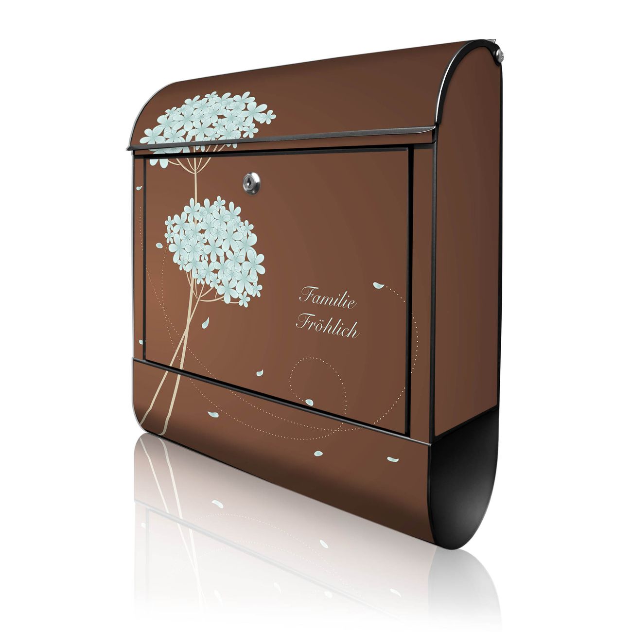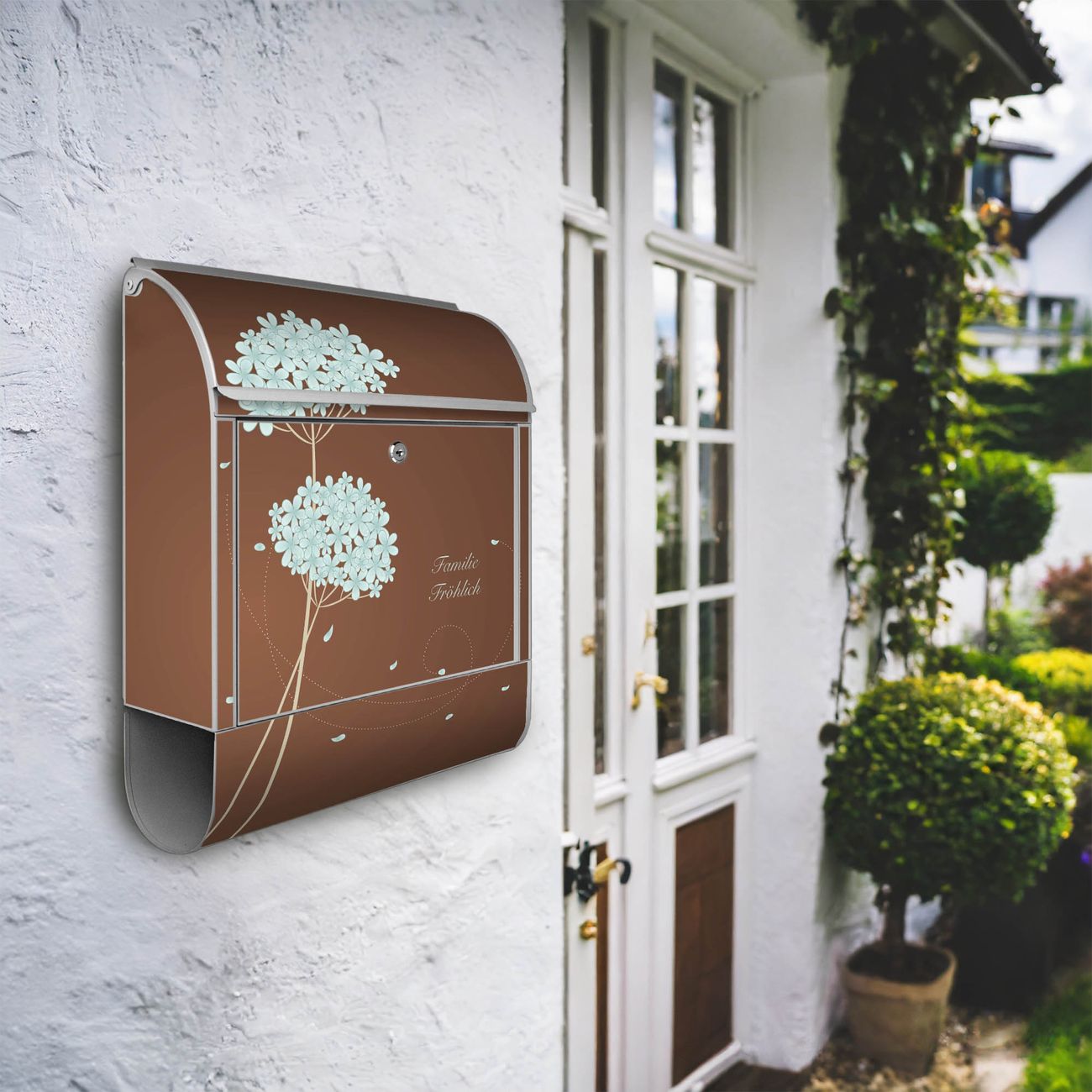 Großer Stahl Briefkasten WT Blaue Hortensie