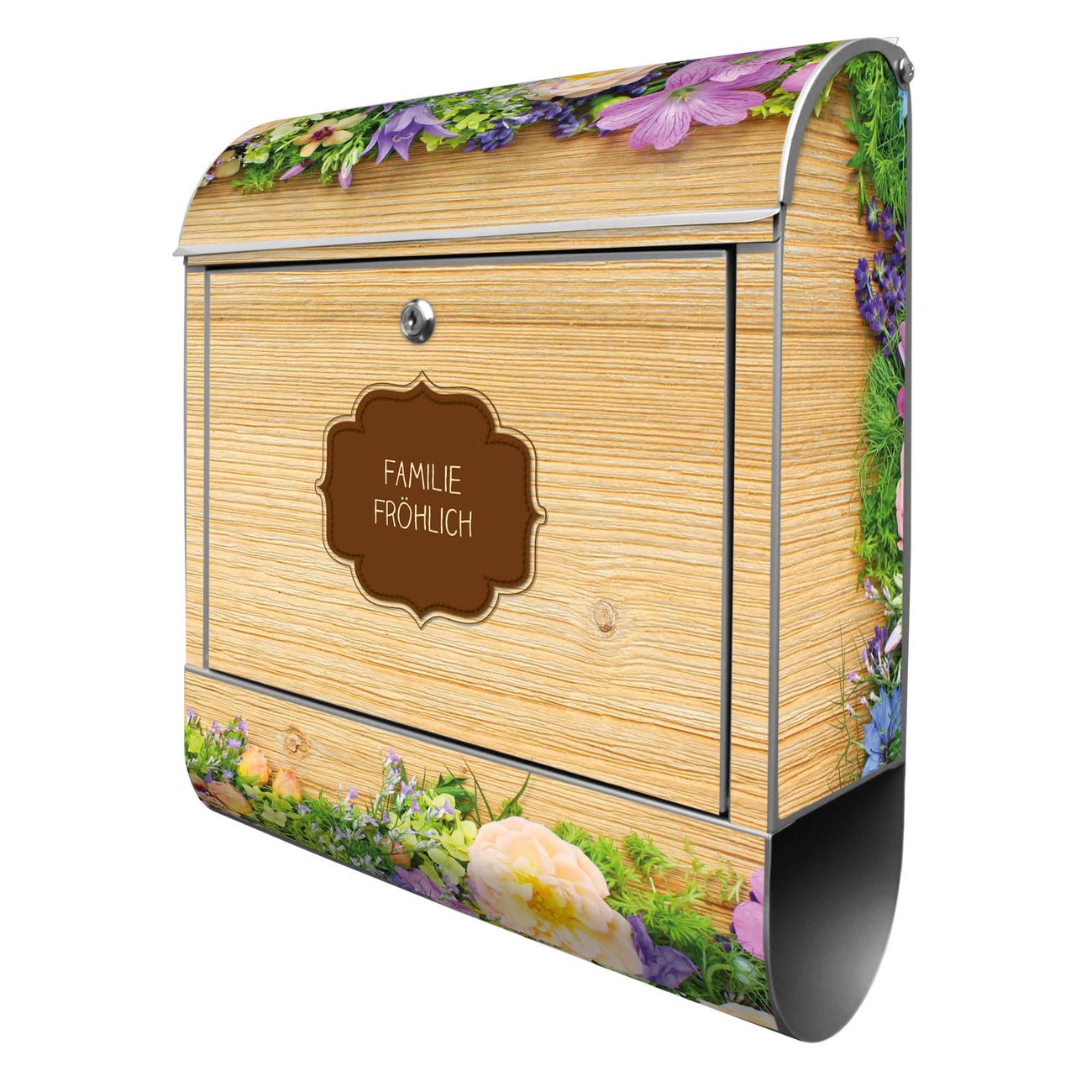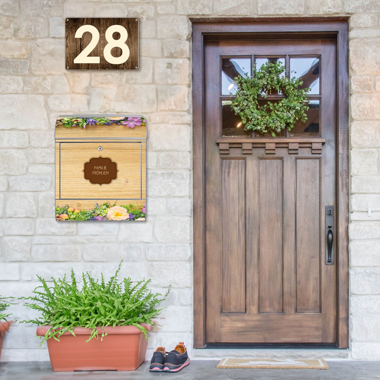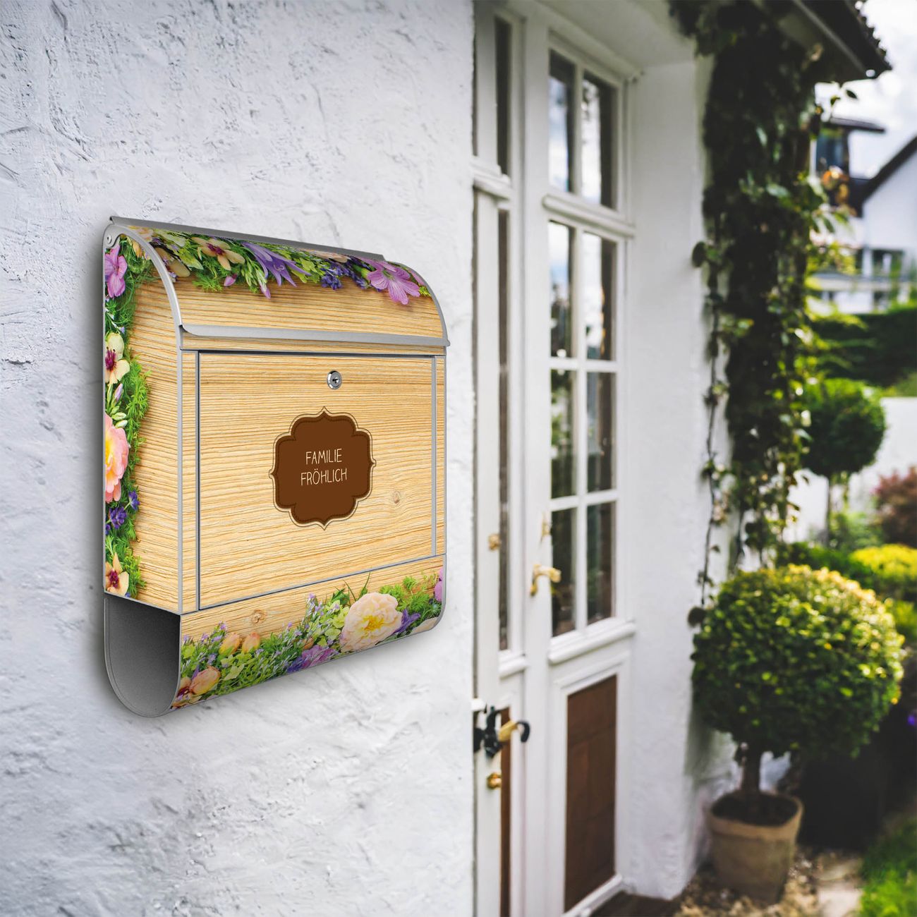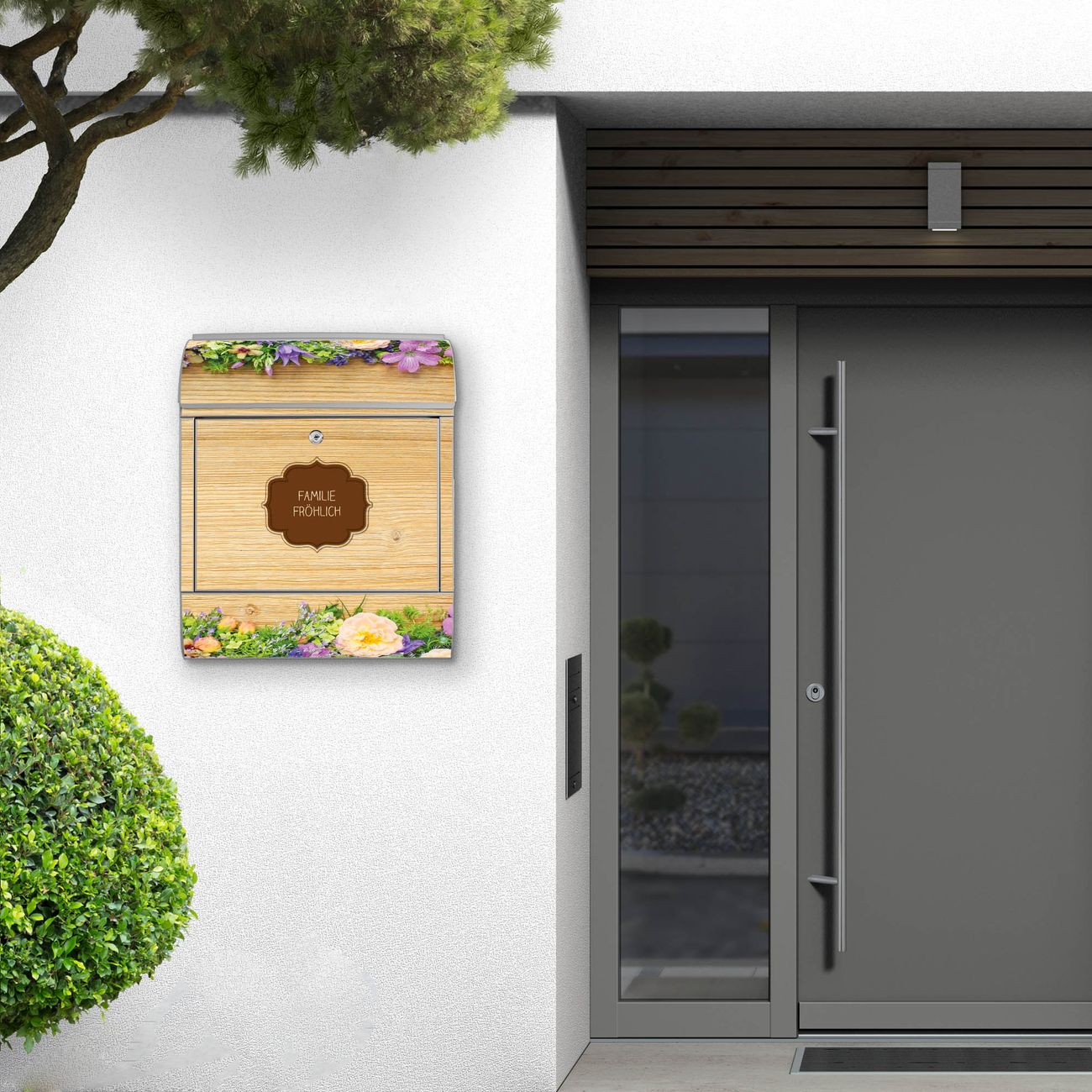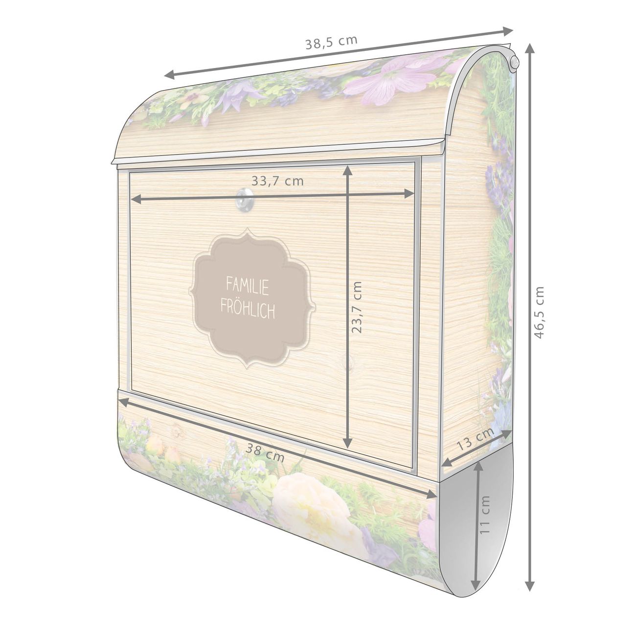DESIGN: Der Postkasten mit Motiv WT Bouquet hat ein sehr ansprechendes und ausgefallenes Design, damit entlocken Sie Ihren Nachbarn und dem Postboten ein Lächeln. Heben Sie Sich von der tristen grauen Masse ab, ohne auf Funktionalität zu verzichten. DETAILS: Der Postkasten besteht aus pulverbeschichtetem Stahl. Er ist 38x46x12,5cm groß. Das Motiv besteht aus einer wetter- und UV-resistenten Folie, die mit einem Schutzlaminat überzogen ist, sodass der Briefkasten zusätzlich vor Kratzern geschützt ist. Der Briefkasten wird mit Montagematerial, zusätzlich zwei Schlüssel sowie einer Bohrschablone geliefert. NUTZEN: Sie können diesen Briefkasten sowohl als Wandbriefkasten montieren oder einen passenden Ständer kaufen und als Standbriefkasten einbetonieren. Die Größe bietet genügend Platz für Sendungen aller Art, der Einwurf fasst auch größere A4 Sendungen. BANJADO: Ihr Briefkasten wird in Sachsen in einer kleinen Manufaktur von Hand veredelt. Die Motivfolie ist lösungsmittelfrei und schutzlaminiert für einen langen Halt. Wir legen großen Wert auf die Verbindung von Funktionalität und Design. Sie erhalten Handarbeit aus Sachsen.