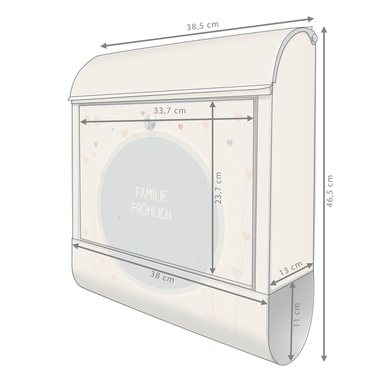 DESIGN: Der Postkasten mit Motiv WT Große Liebe hat ein sehr ansprechendes und ausgefallenes Design, damit entlocken Sie Ihren Nachbarn und dem Postboten ein Lächeln. Heben Sie Sich von der tristen grauen Masse ab, ohne auf Funktionalität zu verzichten. DETAILS: Der Postkasten besteht aus pulverbeschichtetem Stahl. Er ist 38x46x12,5cm groß. Das Motiv besteht aus einer wetter- und UV-resistenten Folie, die mit einem Schutzlaminat überzogen ist, sodass der Briefkasten zusätzlich vor Kratzern geschützt ist. Der Briefkasten wird mit Montagematerial, zusätzlich zwei Schlüssel sowie einer Bohrschablone geliefert. NUTZEN: Sie können diesen Briefkasten sowohl als Wandbriefkasten montieren oder einen passenden Ständer kaufen und als Standbriefkasten einbetonieren. Die Größe bietet genügend Platz für Sendungen aller Art, der Einwurf fasst auch größere A4 Sendungen. BANJADO: Ihr Briefkasten wird in Sachsen in einer kleinen Manufaktur von Hand veredelt. Die Motivfolie ist lösungsmittelfrei und schutzlaminiert für einen langen Halt. Wir legen großen Wert auf die Verbindung von Funktionalität und Design. Sie erhalten Handarbeit aus Sachsen.
