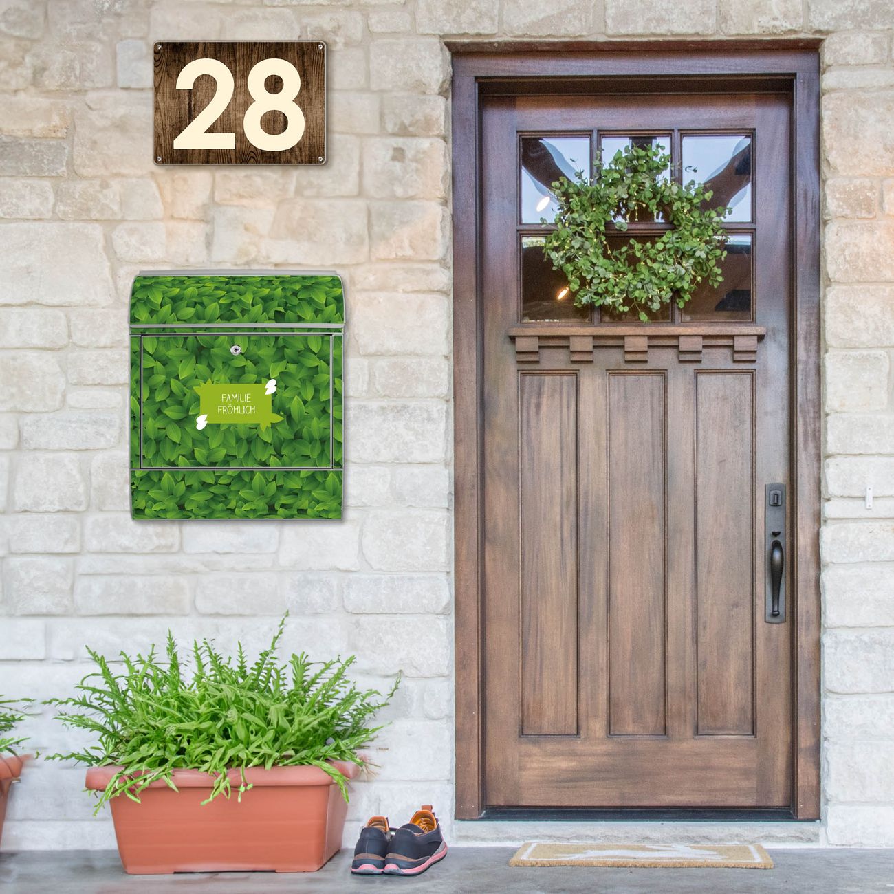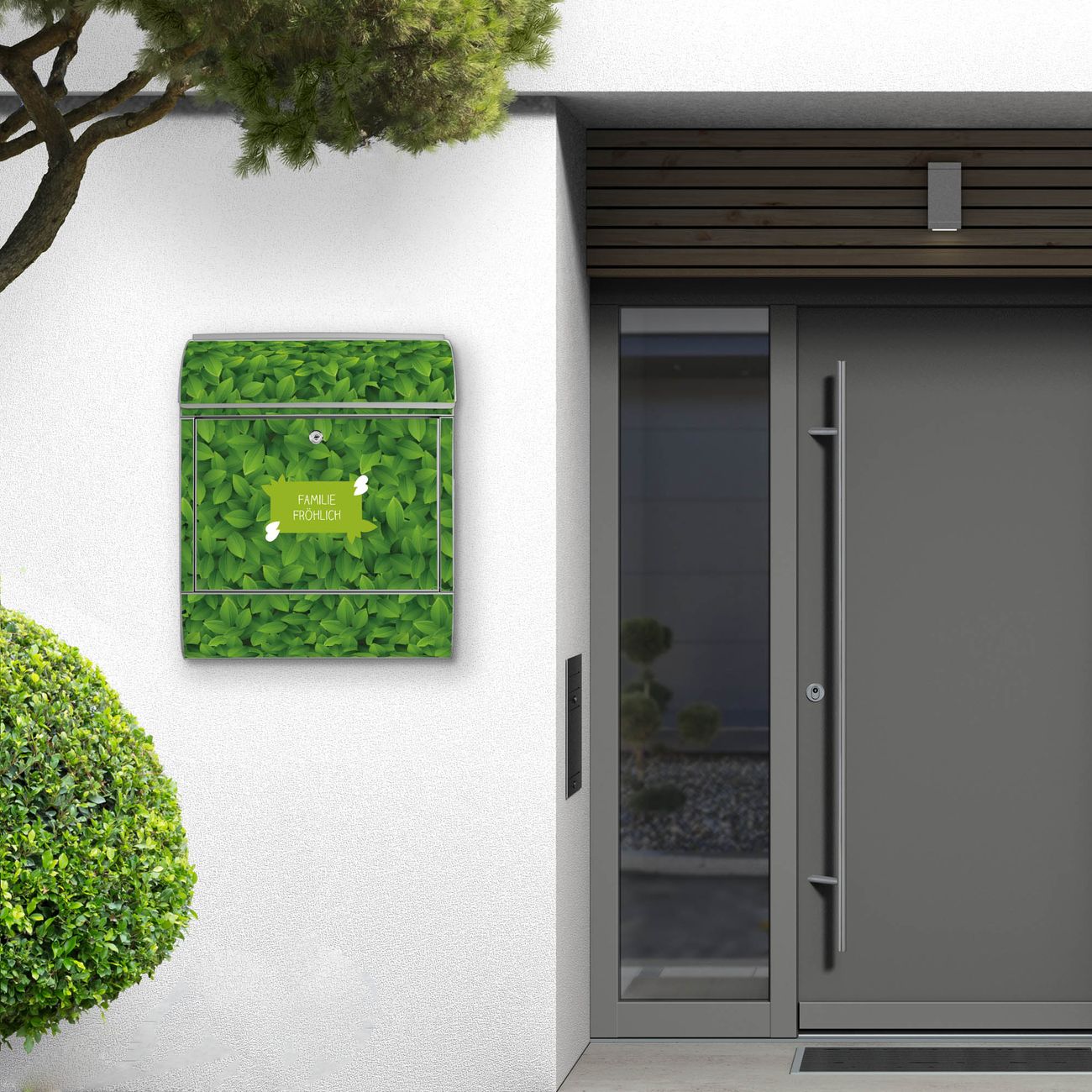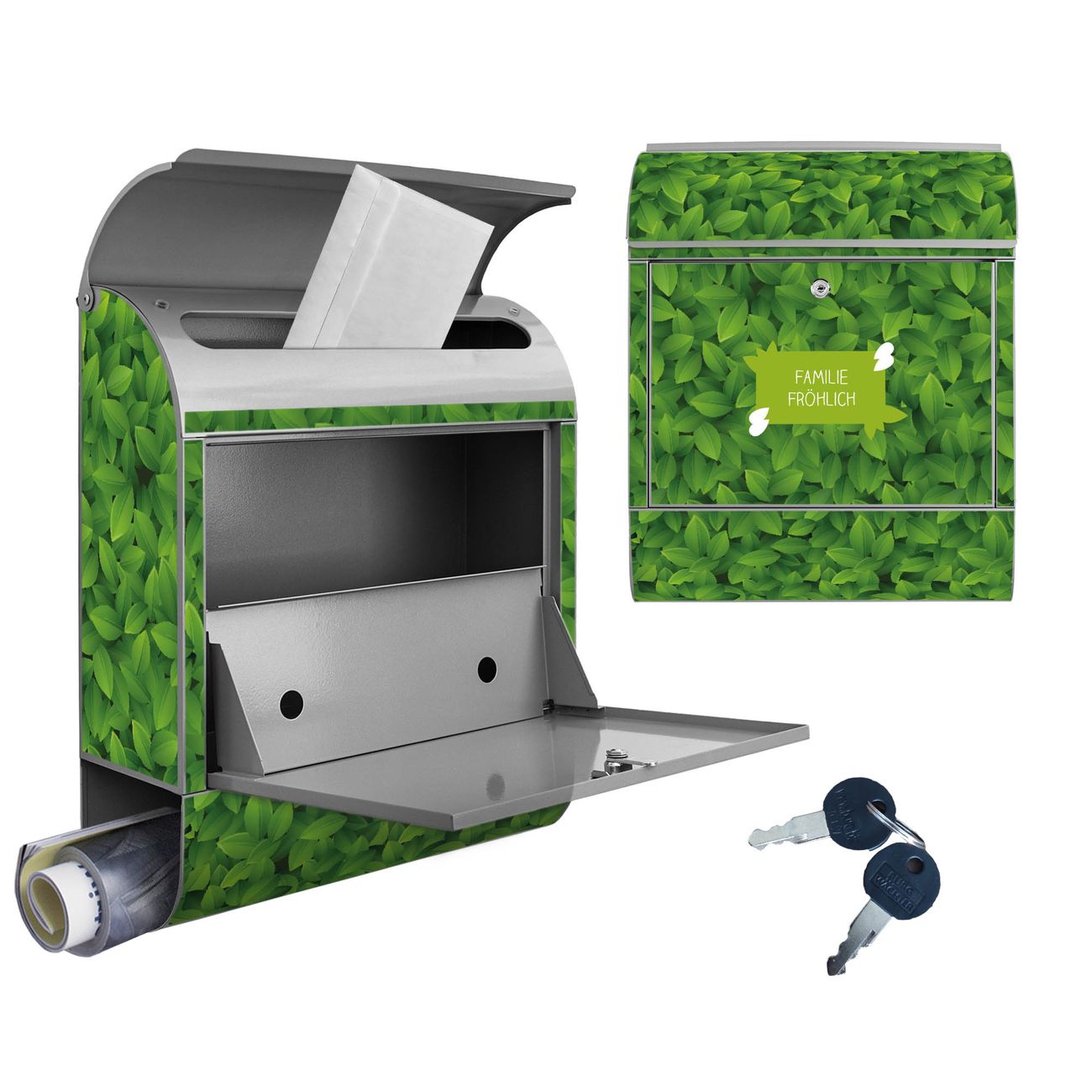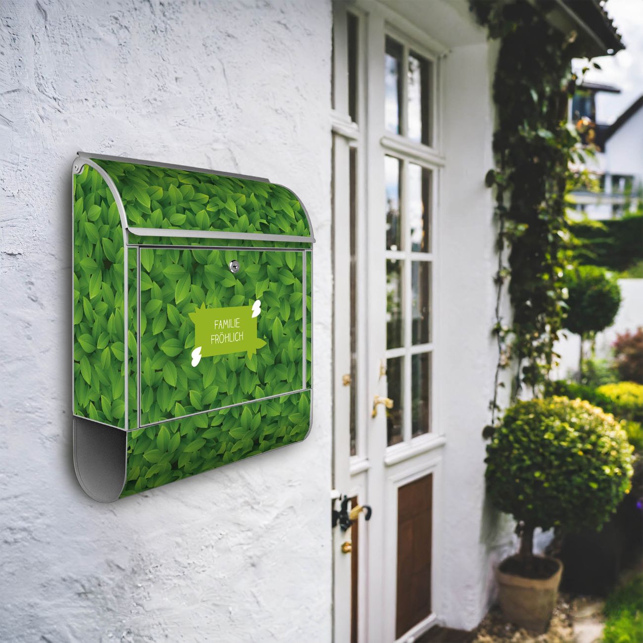 Großer Stahl Briefkasten WT Grüne Blätter
