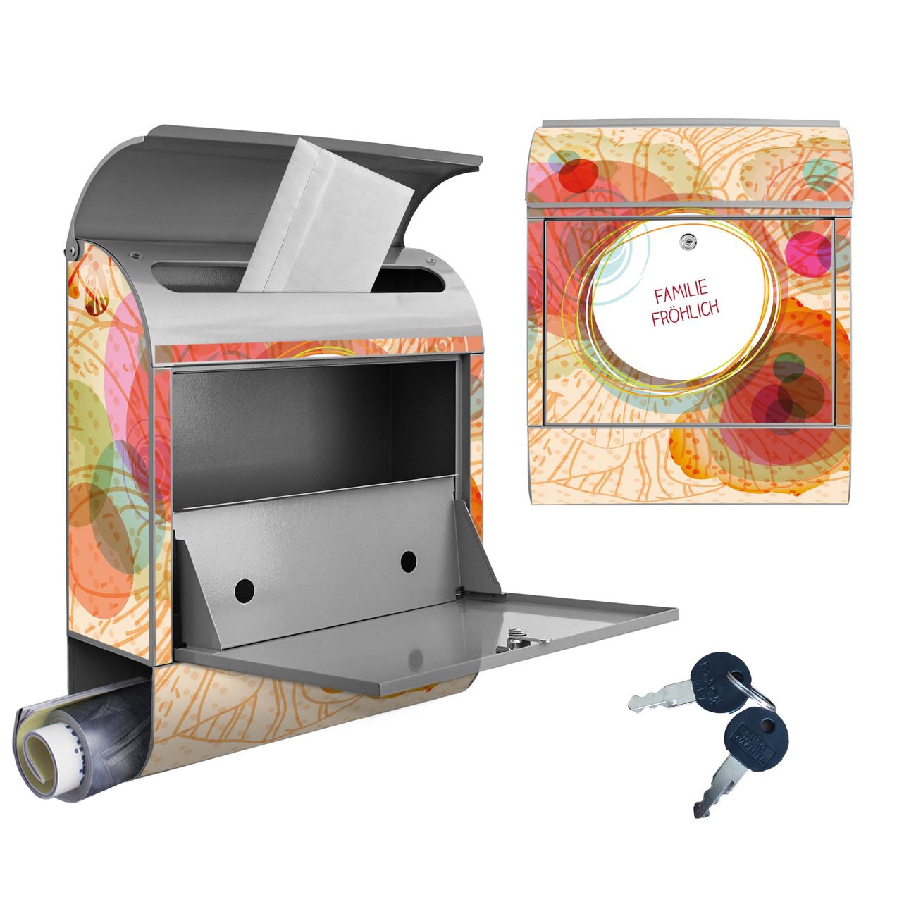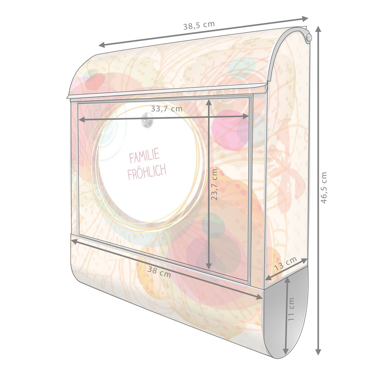 DESIGN: Der Postkasten mit Motiv WT Im Sommer hat ein sehr ansprechendes und ausgefallenes Design, damit entlocken Sie Ihren Nachbarn und dem Postboten ein Lächeln. Heben Sie Sich von der tristen grauen Masse ab, ohne auf Funktionalität zu verzichten. DETAILS: Der Postkasten besteht aus pulverbeschichtetem Stahl. Er ist 38x46x12,5cm groß. Das Motiv besteht aus einer wetter- und UV-resistenten Folie, die mit einem Schutzlaminat überzogen ist, sodass der Briefkasten zusätzlich vor Kratzern geschützt ist. Der Briefkasten wird mit Montagematerial, zusätzlich zwei Schlüssel sowie einer Bohrschablone geliefert. NUTZEN: Sie können diesen Briefkasten sowohl als Wandbriefkasten montieren oder einen passenden Ständer kaufen und als Standbriefkasten einbetonieren. Die Größe bietet genügend Platz für Sendungen aller Art, der Einwurf fasst auch größere A4 Sendungen. BANJADO: Ihr Briefkasten wird in Sachsen in einer kleinen Manufaktur von Hand veredelt. Die Motivfolie ist lösungsmittelfrei und schutzlaminiert für einen langen Halt. Wir legen großen Wert auf die Verbindung von Funktionalität und Design. Sie erhalten Handarbeit aus Sachsen.