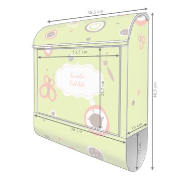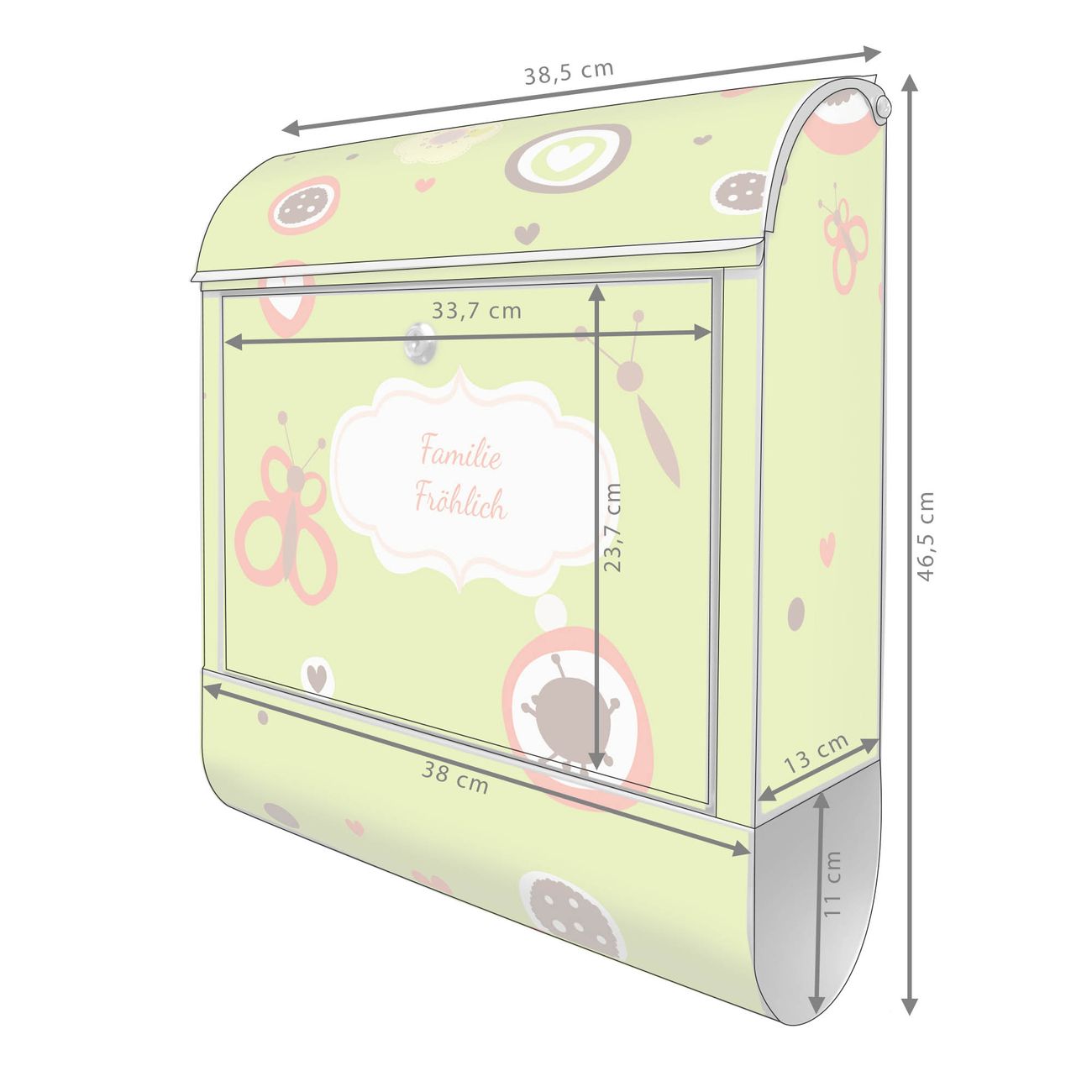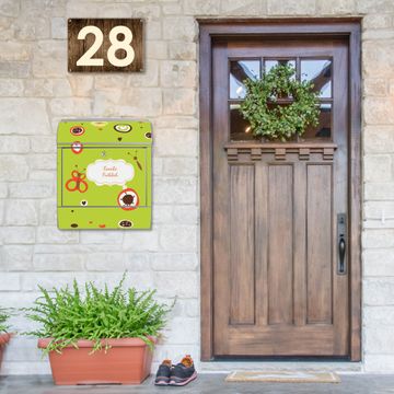 DESIGN: Der Postkasten mit Motiv WT Kinderland hat ein sehr ansprechendes und ausgefallenes Design, damit entlocken Sie Ihren Nachbarn und dem Postboten ein Lächeln. Heben Sie Sich von der tristen grauen Masse ab, ohne auf Funktionalität zu verzichten. DETAILS: Der Postkasten besteht aus pulverbeschichtetem Stahl. Er ist 38x46x12,5cm groß. Das Motiv besteht aus einer wetter- und UV-resistenten Folie, die mit einem Schutzlaminat überzogen ist, sodass der Briefkasten zusätzlich vor Kratzern geschützt ist. Der Briefkasten wird mit Montagematerial, zusätzlich zwei Schlüssel sowie einer Bohrschablone geliefert. NUTZEN: Sie können diesen Briefkasten sowohl als Wandbriefkasten montieren oder einen passenden Ständer kaufen und als Standbriefkasten einbetonieren. Die Größe bietet genügend Platz für Sendungen aller Art, der Einwurf fasst auch größere A4 Sendungen. BANJADO: Ihr Briefkasten wird in Sachsen in einer kleinen Manufaktur von Hand veredelt. Die Motivfolie ist lösungsmittelfrei und schutzlaminiert für einen langen Halt. Wir legen großen Wert auf die Verbindung von Funktionalität und Design. Sie erhalten Handarbeit aus Sachsen.