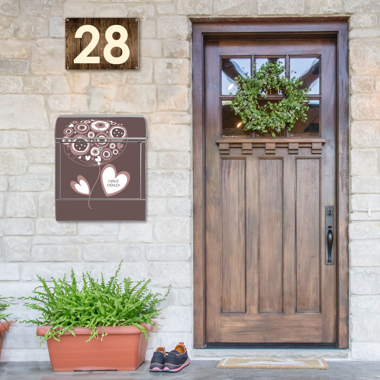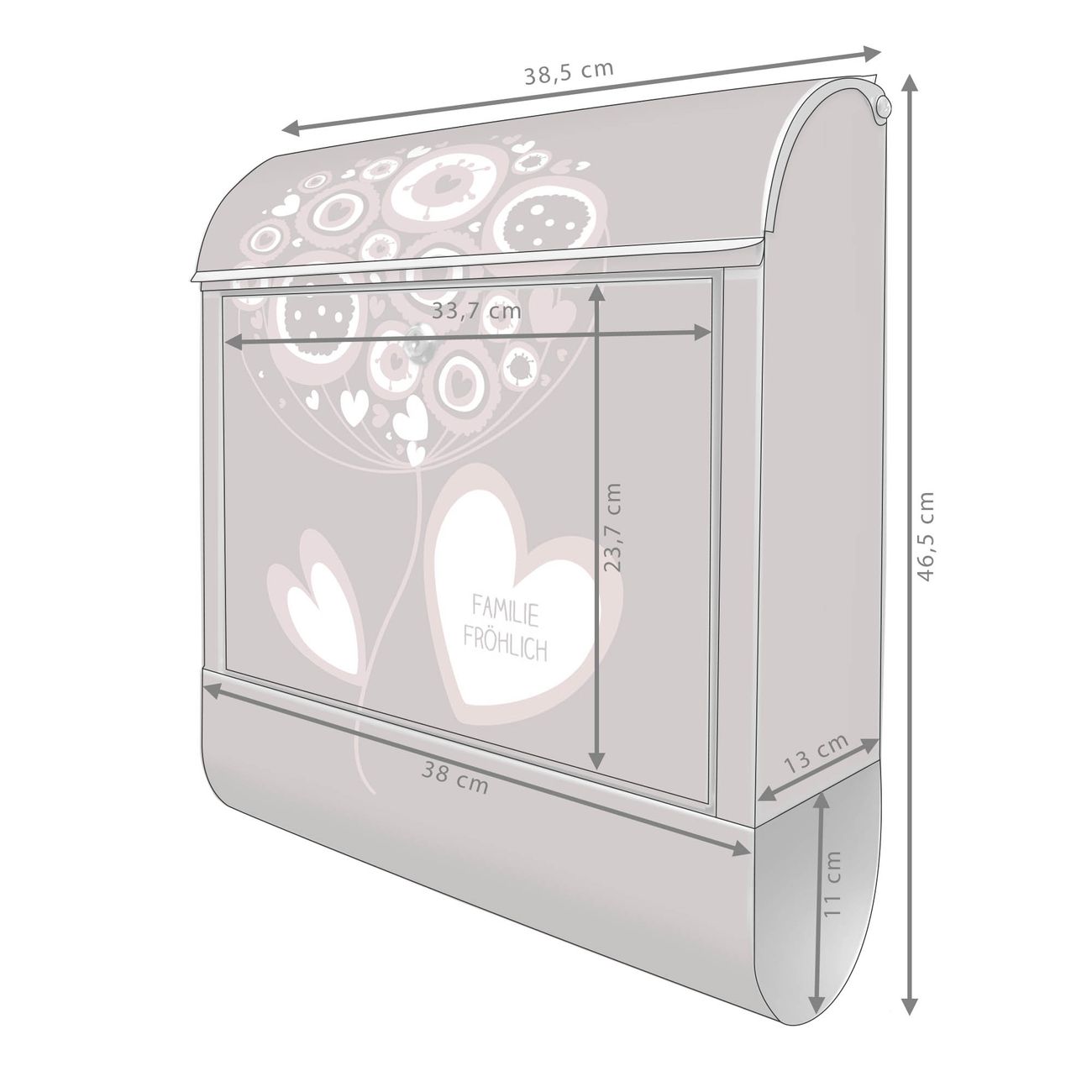 DESIGN: Der Postkasten mit Motiv WT Liebeserklärung hat ein sehr ansprechendes und ausgefallenes Design, damit entlocken Sie Ihren Nachbarn und dem Postboten ein Lächeln. Heben Sie Sich von der tristen grauen Masse ab, ohne auf Funktionalität zu verzichten. DETAILS: Der Postkasten besteht aus pulverbeschichtetem Stahl. Er ist 38x46x12,5cm groß. Das Motiv besteht aus einer wetter- und UV-resistenten Folie, die mit einem Schutzlaminat überzogen ist, sodass der Briefkasten zusätzlich vor Kratzern geschützt ist. Der Briefkasten wird mit Montagematerial, zusätzlich zwei Schlüssel sowie einer Bohrschablone geliefert. NUTZEN: Sie können diesen Briefkasten sowohl als Wandbriefkasten montieren oder einen passenden Ständer kaufen und als Standbriefkasten einbetonieren. Die Größe bietet genügend Platz für Sendungen aller Art, der Einwurf fasst auch größere A4 Sendungen. BANJADO: Ihr Briefkasten wird in Sachsen in einer kleinen Manufaktur von Hand veredelt. Die Motivfolie ist lösungsmittelfrei und schutzlaminiert für einen langen Halt. Wir legen großen Wert auf die Verbindung von Funktionalität und Design. Sie erhalten Handarbeit aus Sachsen.
