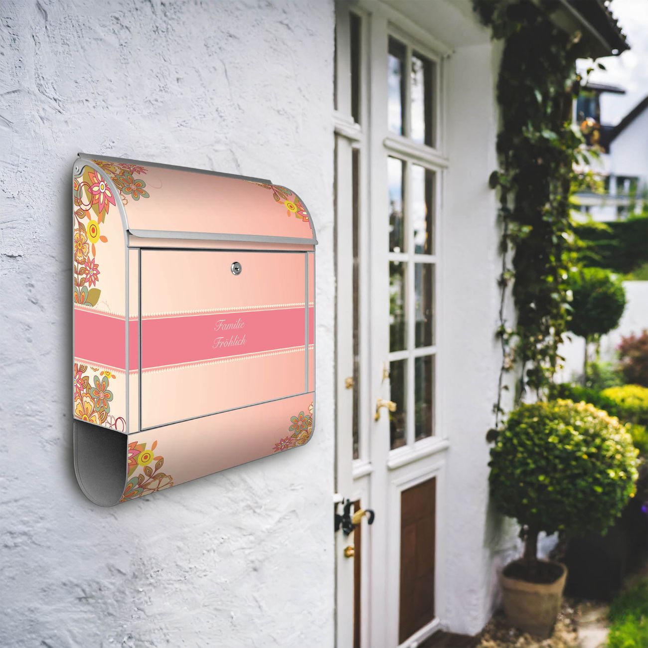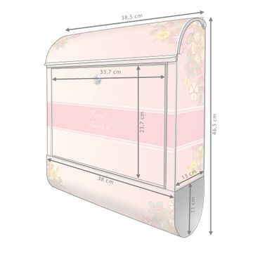 DESIGN: Der Postkasten mit Motiv WT Lustige Blumen hat ein sehr ansprechendes und ausgefallenes Design, damit entlocken Sie Ihren Nachbarn und dem Postboten ein Lächeln. Heben Sie Sich von der tristen grauen Masse ab, ohne auf Funktionalität zu verzichten. DETAILS: Der Postkasten besteht aus pulverbeschichtetem Stahl. Er ist 38x46x12,5cm groß. Das Motiv besteht aus einer wetter- und UV-resistenten Folie, die mit einem Schutzlaminat überzogen ist, sodass der Briefkasten zusätzlich vor Kratzern geschützt ist. Der Briefkasten wird mit Montagematerial, zusätzlich zwei Schlüssel sowie einer Bohrschablone geliefert. NUTZEN: Sie können diesen Briefkasten sowohl als Wandbriefkasten montieren oder einen passenden Ständer kaufen und als Standbriefkasten einbetonieren. Die Größe bietet genügend Platz für Sendungen aller Art, der Einwurf fasst auch größere A4 Sendungen. BANJADO: Ihr Briefkasten wird in Sachsen in einer kleinen Manufaktur von Hand veredelt. Die Motivfolie ist lösungsmittelfrei und schutzlaminiert für einen langen Halt. Wir legen großen Wert auf die Verbindung von Funktionalität und Design. Sie erhalten Handarbeit aus Sachsen.