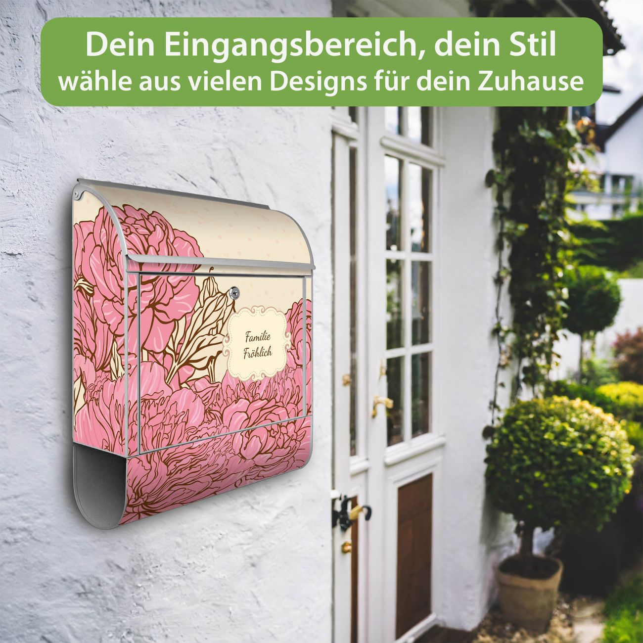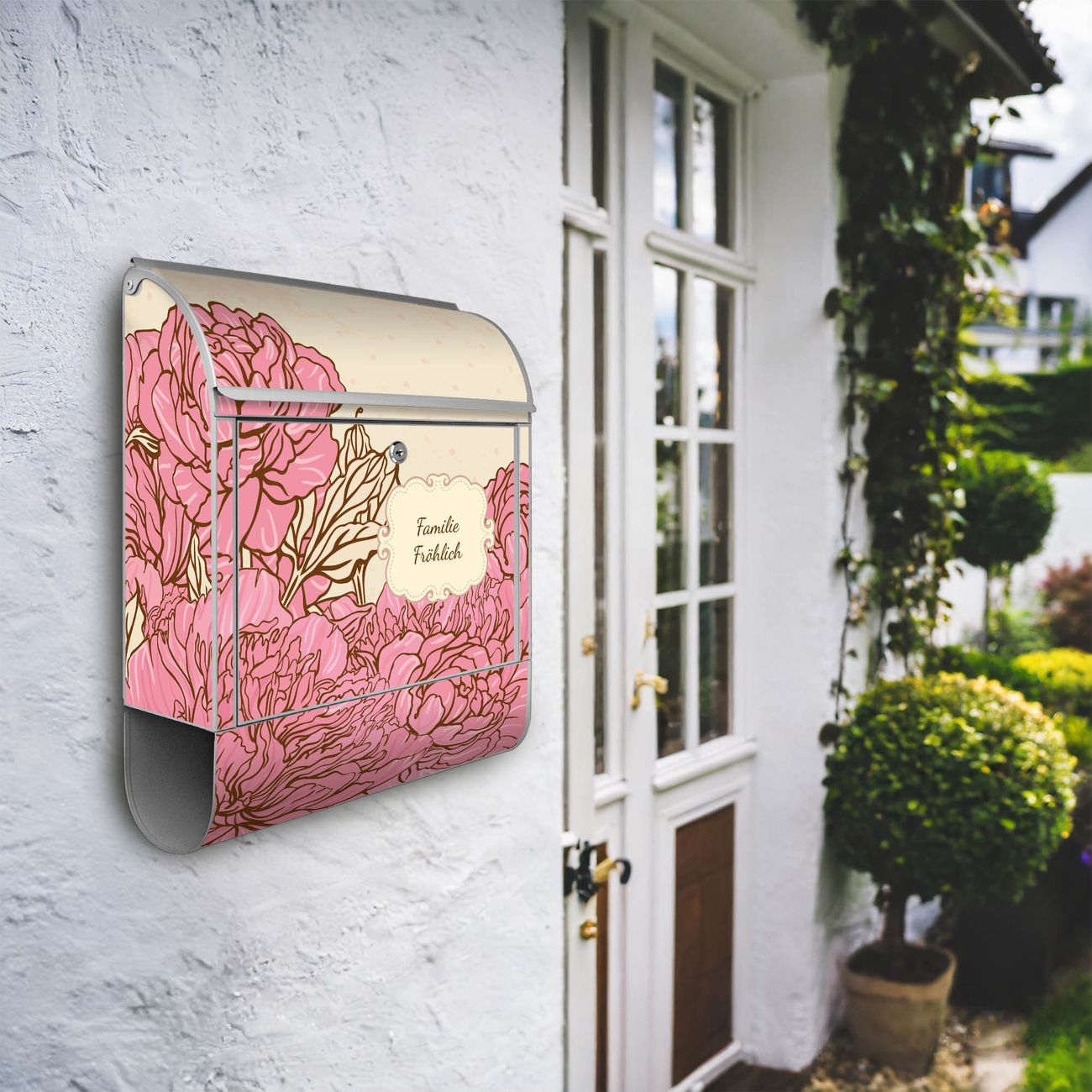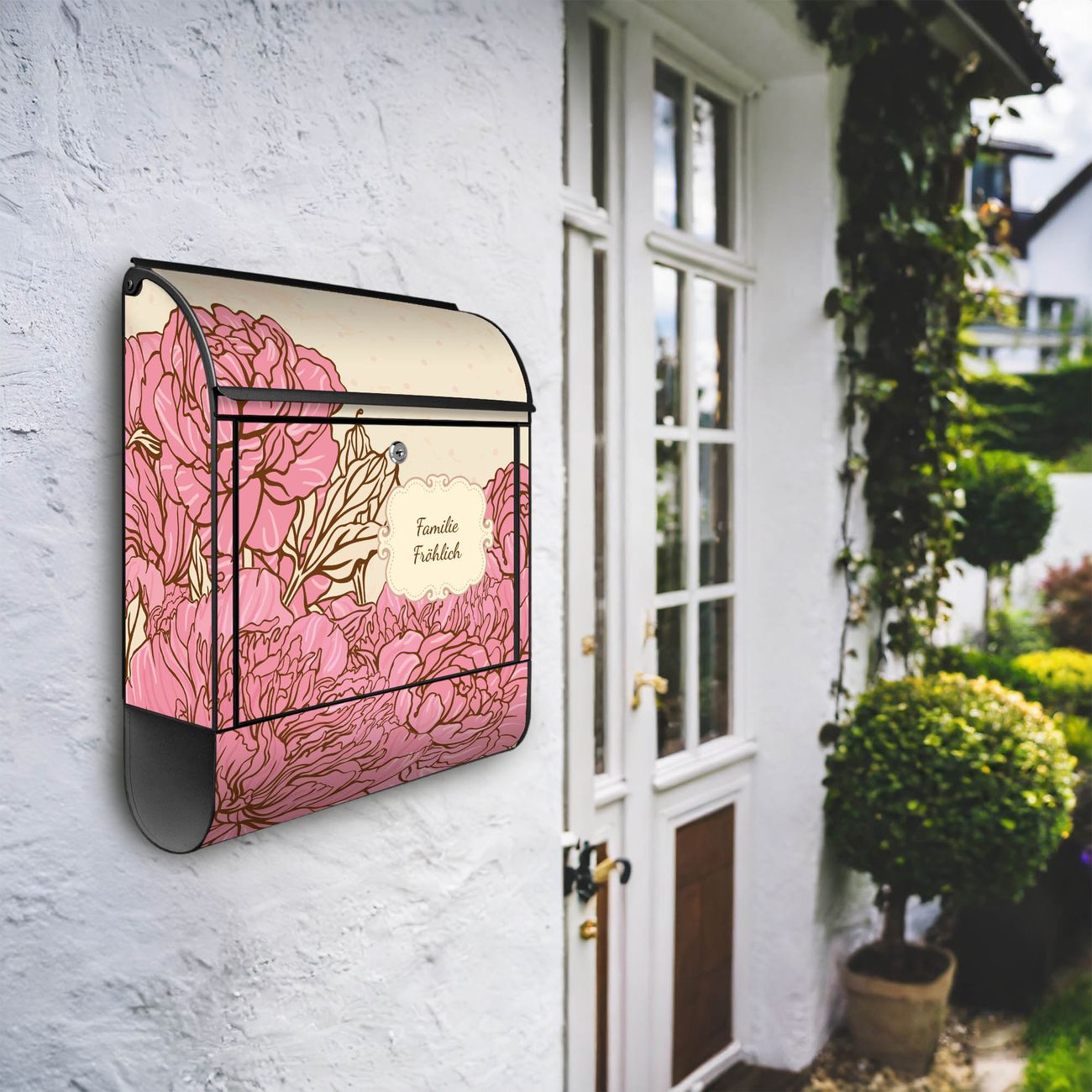 Großer Stahl Briefkasten WT Pfingstrose