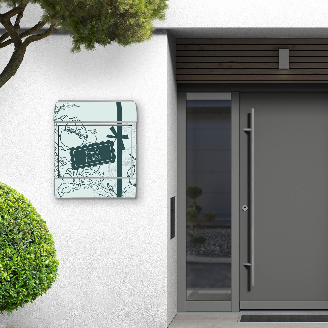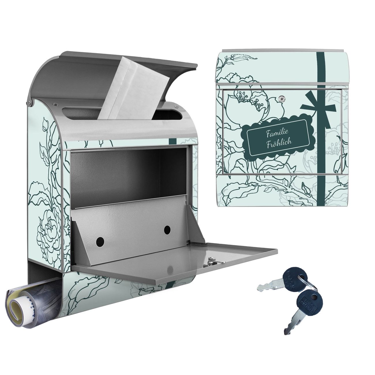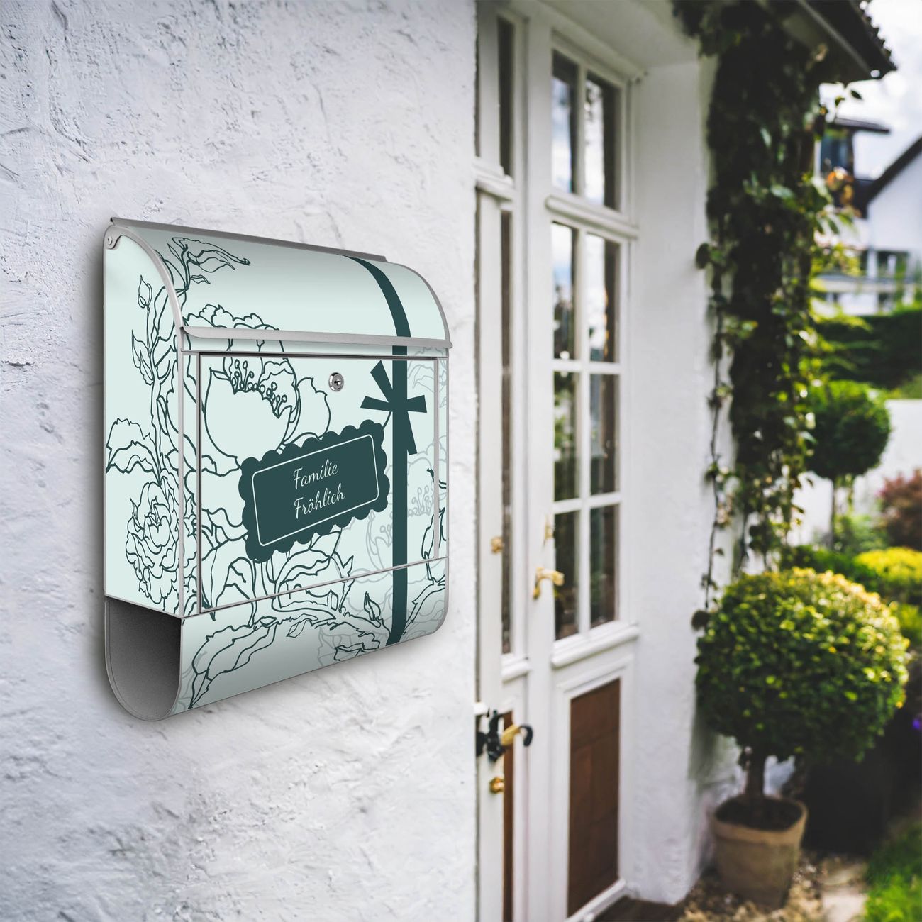 Großer Stahl Briefkasten WT Rosengruß