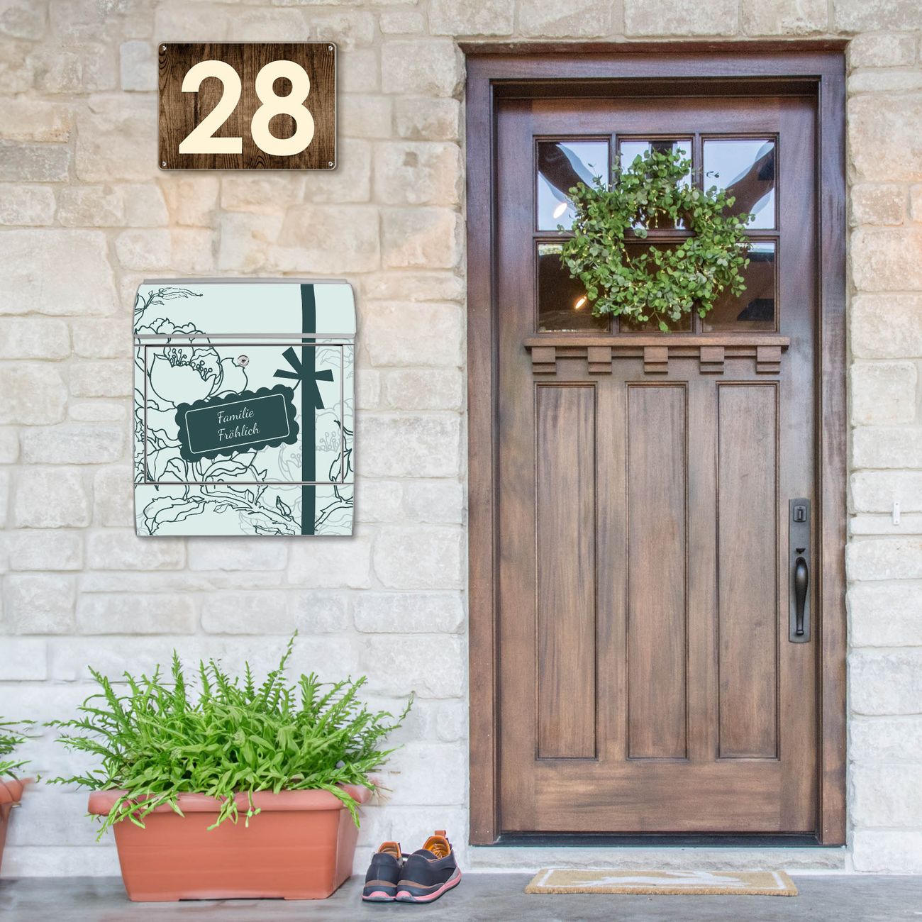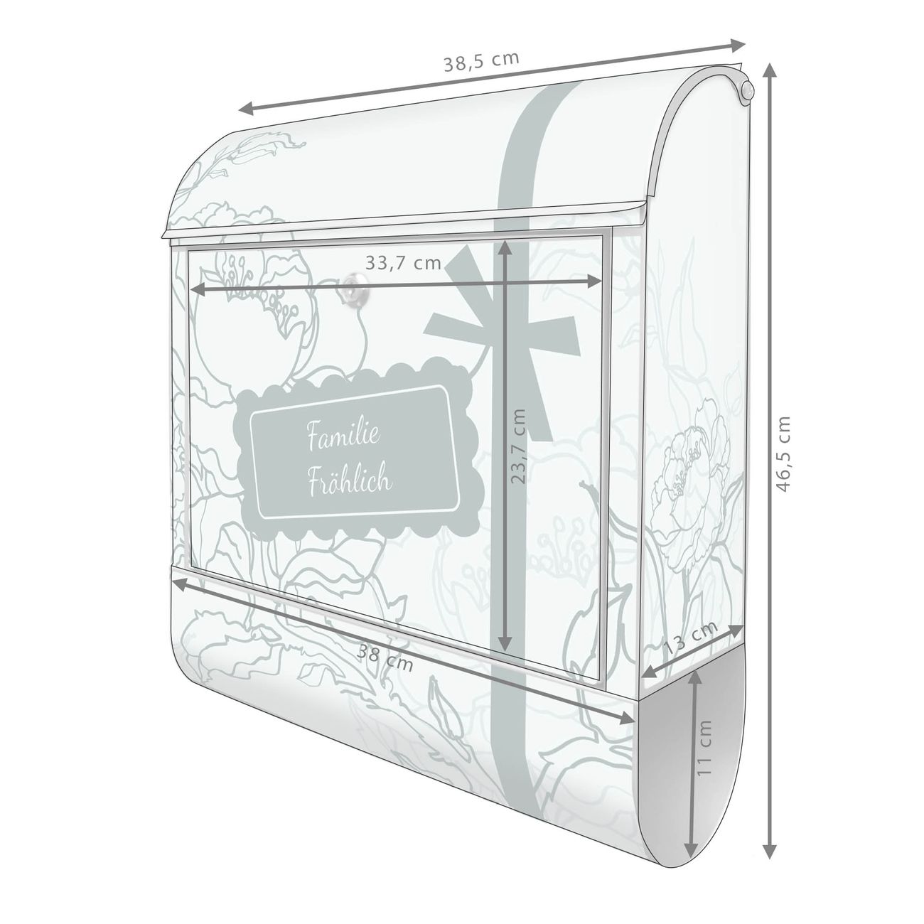 DESIGN: Der Postkasten mit Motiv WT Rosengruß hat ein sehr ansprechendes und ausgefallenes Design, damit entlocken Sie Ihren Nachbarn und dem Postboten ein Lächeln. Heben Sie Sich von der tristen grauen Masse ab, ohne auf Funktionalität zu verzichten. DETAILS: Der Postkasten besteht aus pulverbeschichtetem Stahl. Er ist 38x46x12,5cm groß. Das Motiv besteht aus einer wetter- und UV-resistenten Folie, die mit einem Schutzlaminat überzogen ist, sodass der Briefkasten zusätzlich vor Kratzern geschützt ist. Der Briefkasten wird mit Montagematerial, zusätzlich zwei Schlüssel sowie einer Bohrschablone geliefert. NUTZEN: Sie können diesen Briefkasten sowohl als Wandbriefkasten montieren oder einen passenden Ständer kaufen und als Standbriefkasten einbetonieren. Die Größe bietet genügend Platz für Sendungen aller Art, der Einwurf fasst auch größere A4 Sendungen. BANJADO: Ihr Briefkasten wird in Sachsen in einer kleinen Manufaktur von Hand veredelt. Die Motivfolie ist lösungsmittelfrei und schutzlaminiert für einen langen Halt. Wir legen großen Wert auf die Verbindung von Funktionalität und Design. Sie erhalten Handarbeit aus Sachsen.