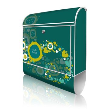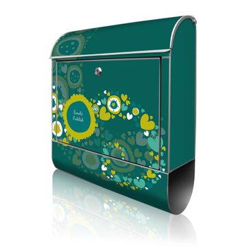 DESIGN: Der Postkasten mit Motiv Motiv WT Strömende Herzen hat ein sehr ansprechendes und ausgefallenes Design, damit entlocken Sie Ihren Nachbarn und dem Postboten ein Lächeln. Heben Sie Sich von der tristen grauen Masse ab, ohne auf Funktionalität zu verzichten. DETAILS: Der Postkasten besteht aus pulverbeschichtetem Stahl. Er ist 38x46x12,5cm groß. Das Motiv besteht aus einer wetter- und UV-resistenten Folie, die mit einem Schutzlaminat überzogen ist, sodass der Briefkasten zusätzlich vor Kratzern geschützt ist. Der Briefkasten wird mit Montagematerial, zusätzlich zwei Schlüssel sowie einer Bohrschablone geliefert. NUTZEN: Sie können diesen Briefkasten sowohl als Wandbriefkasten montieren oder einen passenden Ständer kaufen und als Standbriefkasten einbetonieren. Die Größe bietet genügend Platz für Sendungen aller Art, der Einwurf fasst auch größere A4 Sendungen. BANJADO: Ihr Briefkasten wird in Sachsen in einer kleinen Manufaktur von Hand veredelt. Die Motivfolie ist lösungsmittelfrei und schutzlaminiert für einen langen Halt. Wir legen großen Wert auf die Verbindung von Funktionalität und Design. Sie erhalten Handarbeit aus Sachsen.