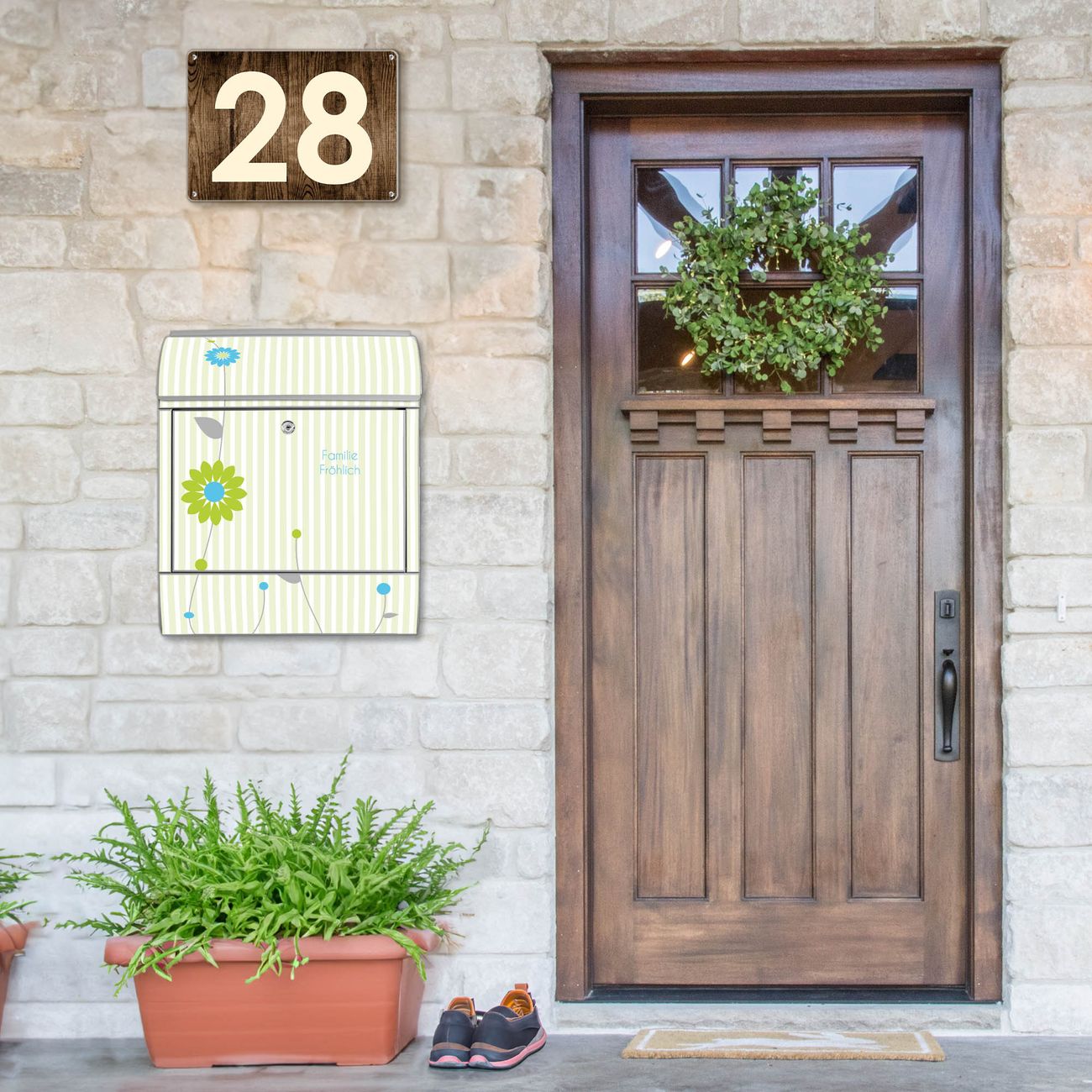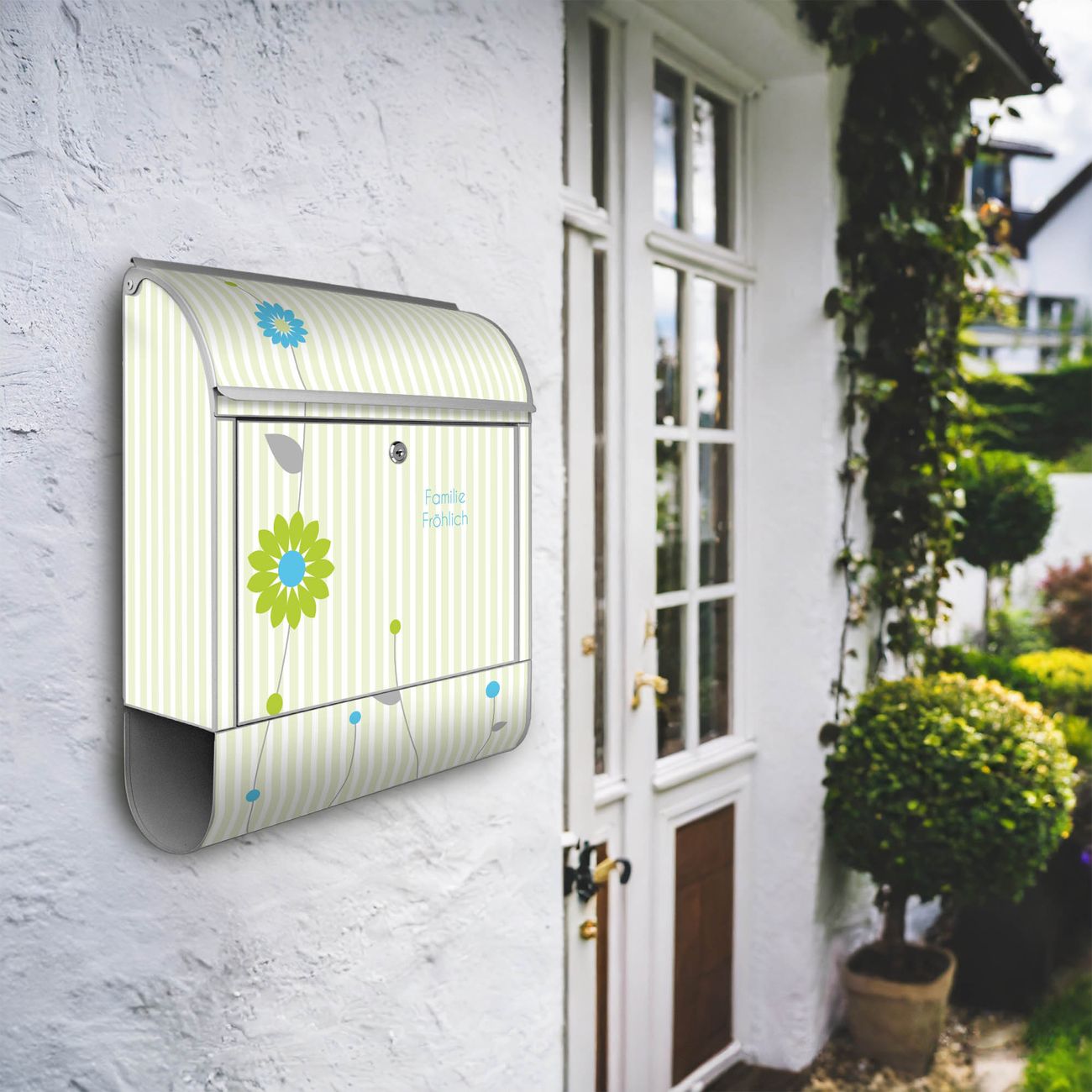Großer Stahl Briefkasten WT Zarte Blumen