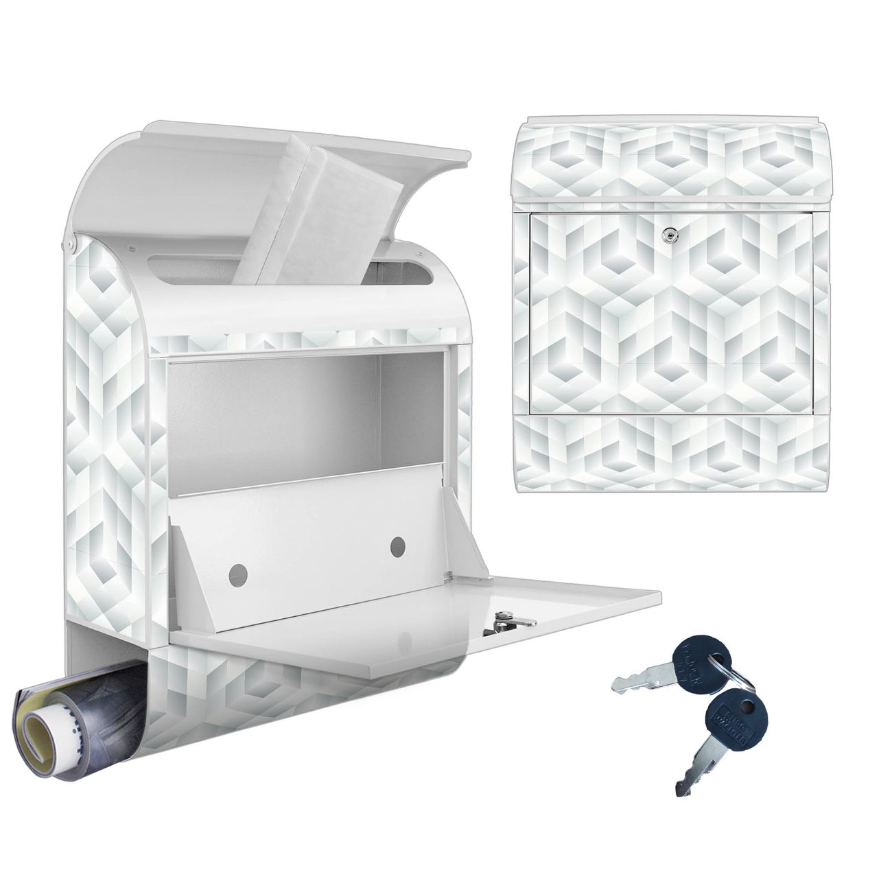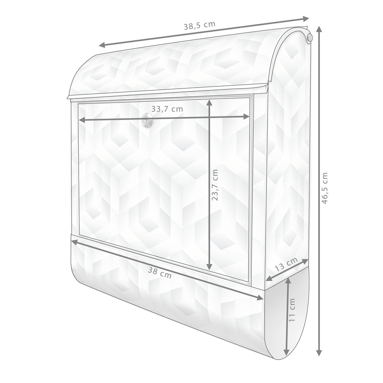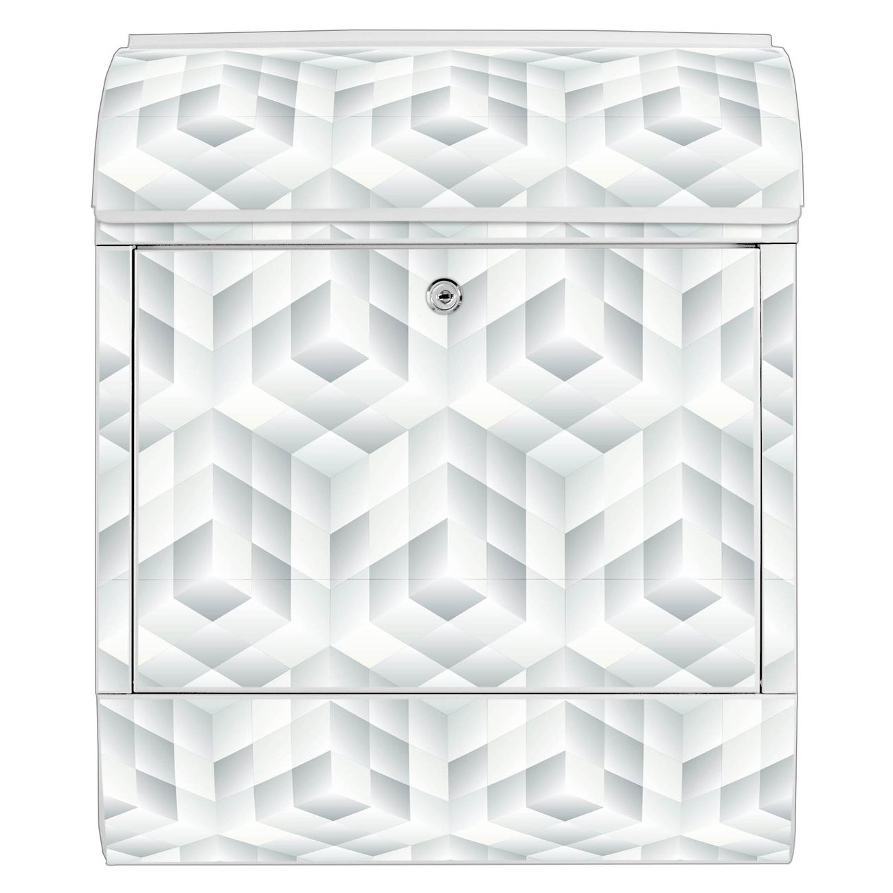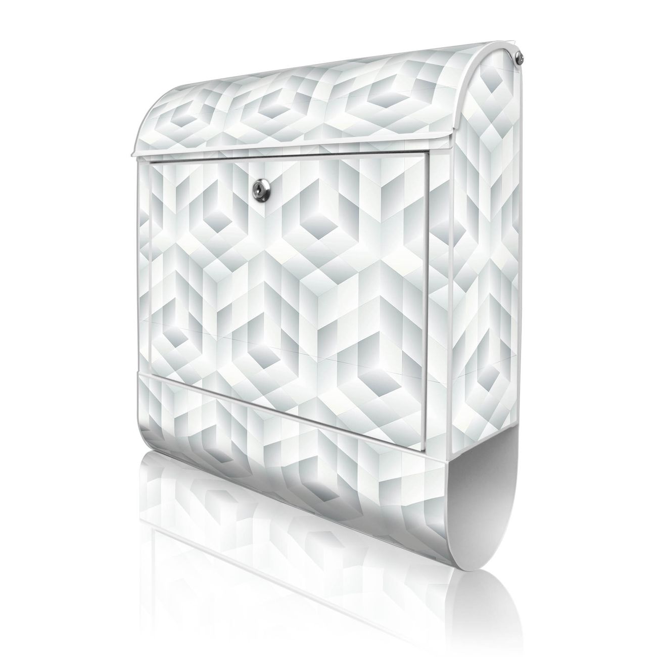 Großer Stahl Briefkasten Motiv Würfel Grau