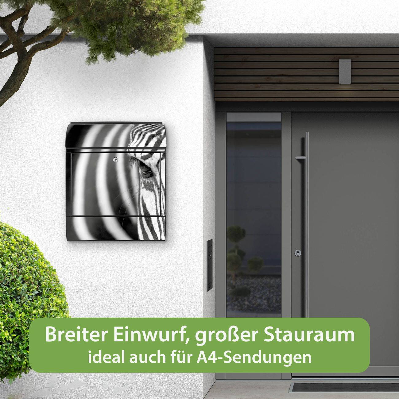 Großer Stahl Briefkasten Motiv Zebra En Face