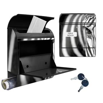 DESIGN: Der Postkasten mit Motiv Motiv Zebra En Face hat ein sehr ansprechendes und ausgefallenes Design, damit entlocken Sie Ihren Nachbarn und dem Postboten ein Lächeln. Heben Sie Sich von der tristen grauen Masse ab, ohne auf Funktionalität zu verzichten. DETAILS: Der Postkasten besteht aus pulverbeschichtetem Stahl. Er ist 38x46x12,5cm groß. Das Motiv besteht aus einer wetter- und UV-resistenten Folie, die mit einem Schutzlaminat überzogen ist, sodass der Briefkasten zusätzlich vor Kratzern geschützt ist. Der Briefkasten wird mit Montagematerial, zusätzlich zwei Schlüssel sowie einer Bohrschablone geliefert. NUTZEN: Sie können diesen Briefkasten sowohl als Wandbriefkasten montieren oder einen passenden Ständer kaufen und als Standbriefkasten einbetonieren. Die Größe bietet genügend Platz für Sendungen aller Art, der Einwurf fasst auch größere A4 Sendungen. BANJADO: Ihr Briefkasten wird in Sachsen in einer kleinen Manufaktur von Hand veredelt. Die Motivfolie ist lösungsmittelfrei und schutzlaminiert für einen langen Halt. Wir legen großen Wert auf die Verbindung von Funktionalität und Design. Sie erhalten Handarbeit aus Sachsen.
