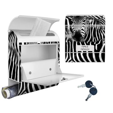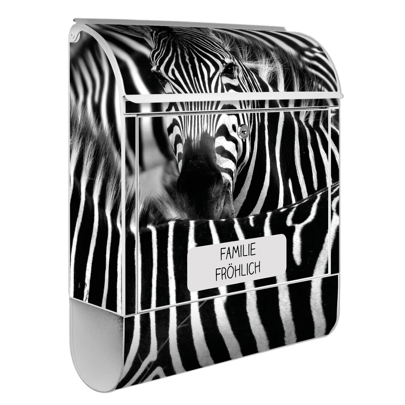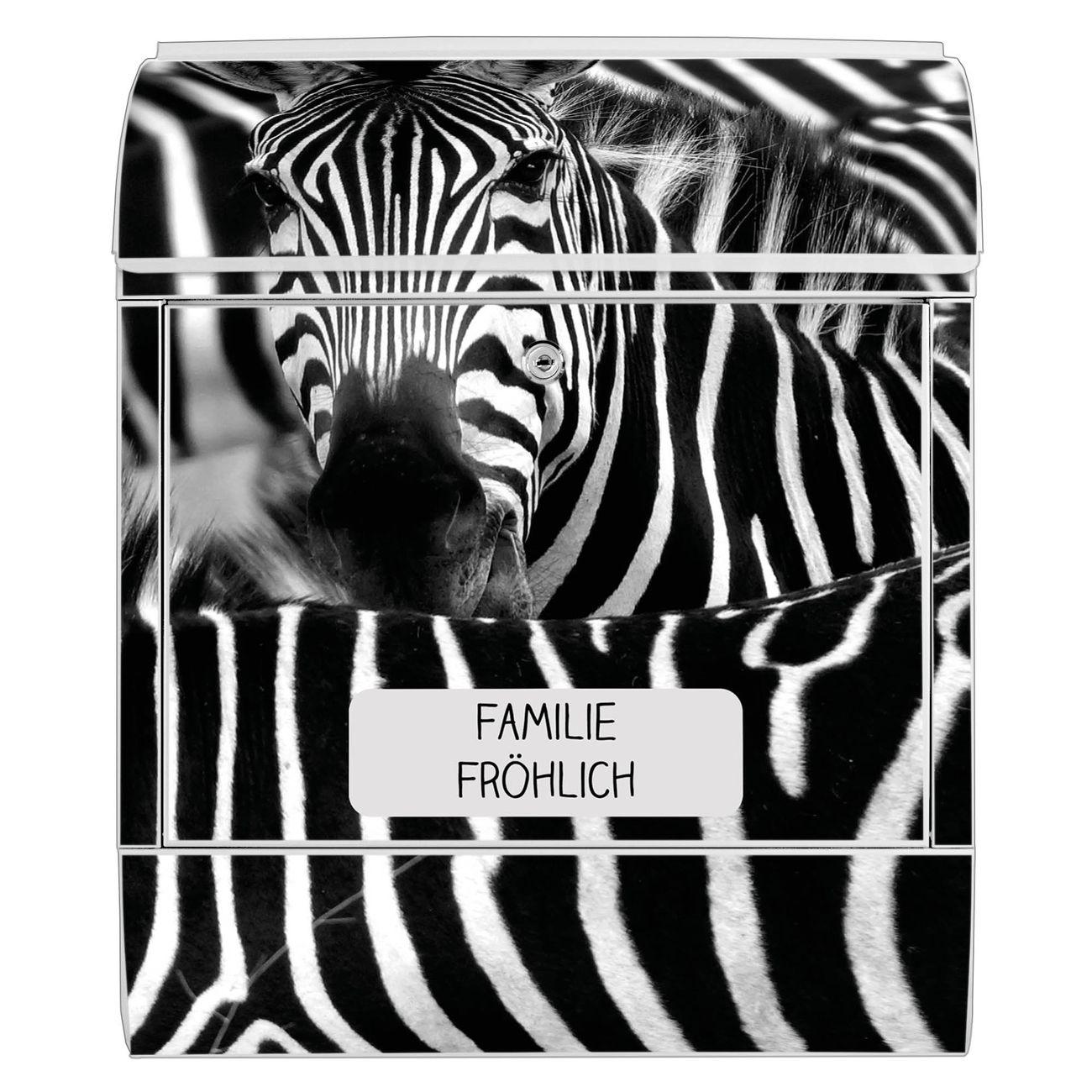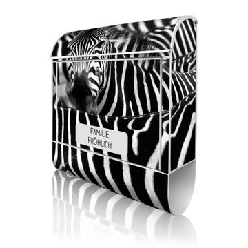 DESIGN: Der Postkasten mit Motiv Motiv Zebras hat ein sehr ansprechendes und ausgefallenes Design, damit entlocken Sie Ihren Nachbarn und dem Postboten ein Lächeln. Heben Sie Sich von der tristen grauen Masse ab, ohne auf Funktionalität zu verzichten. DETAILS: Der Postkasten besteht aus pulverbeschichtetem Stahl. Er ist 38x46x12,5cm groß. Das Motiv besteht aus einer wetter- und UV-resistenten Folie, die mit einem Schutzlaminat überzogen ist, sodass der Briefkasten zusätzlich vor Kratzern geschützt ist. Der Briefkasten wird mit Montagematerial, zusätzlich zwei Schlüssel sowie einer Bohrschablone geliefert. NUTZEN: Sie können diesen Briefkasten sowohl als Wandbriefkasten montieren oder einen passenden Ständer kaufen und als Standbriefkasten einbetonieren. Die Größe bietet genügend Platz für Sendungen aller Art, der Einwurf fasst auch größere A4 Sendungen. BANJADO: Ihr Briefkasten wird in Sachsen in einer kleinen Manufaktur von Hand veredelt. Die Motivfolie ist lösungsmittelfrei und schutzlaminiert für einen langen Halt. Wir legen großen Wert auf die Verbindung von Funktionalität und Design. Sie erhalten Handarbeit aus Sachsen.