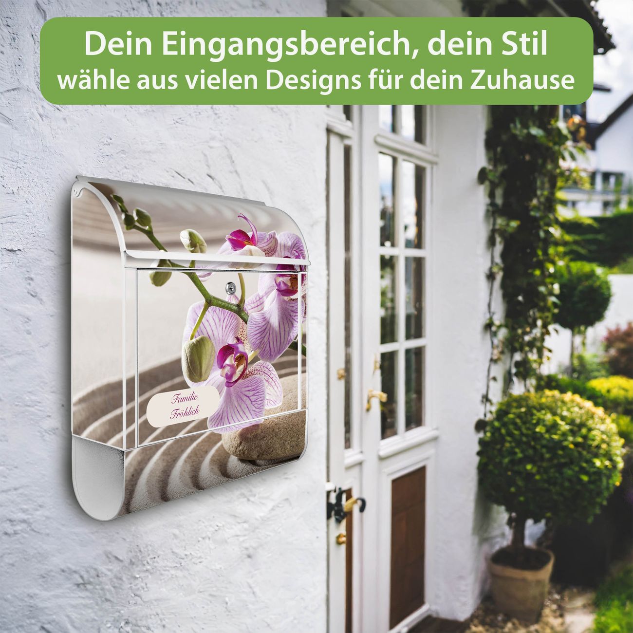 DESIGN: Der Postkasten mit Motiv Motiv Zen Relax hat ein sehr ansprechendes und ausgefallenes Design, damit entlocken Sie Ihren Nachbarn und dem Postboten ein Lächeln. Heben Sie Sich von der tristen grauen Masse ab, ohne auf Funktionalität zu verzichten. DETAILS: Der Postkasten besteht aus pulverbeschichtetem Stahl. Er ist 38x46x12,5cm groß. Das Motiv besteht aus einer wetter- und UV-resistenten Folie, die mit einem Schutzlaminat überzogen ist, sodass der Briefkasten zusätzlich vor Kratzern geschützt ist. Der Briefkasten wird mit Montagematerial, zusätzlich zwei Schlüssel sowie einer Bohrschablone geliefert. NUTZEN: Sie können diesen Briefkasten sowohl als Wandbriefkasten montieren oder einen passenden Ständer kaufen und als Standbriefkasten einbetonieren. Die Größe bietet genügend Platz für Sendungen aller Art, der Einwurf fasst auch größere A4 Sendungen. BANJADO: Ihr Briefkasten wird in Sachsen in einer kleinen Manufaktur von Hand veredelt. Die Motivfolie ist lösungsmittelfrei und schutzlaminiert für einen langen Halt. Wir legen großen Wert auf die Verbindung von Funktionalität und Design. Sie erhalten Handarbeit aus Sachsen.