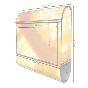 DESIGN: Der Postkasten mit Motiv Motiv Zitrusfrüchte hat ein sehr ansprechendes und ausgefallenes Design, damit entlocken Sie Ihren Nachbarn und dem Postboten ein Lächeln. Heben Sie Sich von der tristen grauen Masse ab, ohne auf Funktionalität zu verzichten. DETAILS: Der Postkasten besteht aus pulverbeschichtetem Stahl. Er ist 38x46x12,5cm groß. Das Motiv besteht aus einer wetter- und UV-resistenten Folie, die mit einem Schutzlaminat überzogen ist, sodass der Briefkasten zusätzlich vor Kratzern geschützt ist. Der Briefkasten wird mit Montagematerial, zusätzlich zwei Schlüssel sowie einer Bohrschablone geliefert. NUTZEN: Sie können diesen Briefkasten sowohl als Wandbriefkasten montieren oder einen passenden Ständer kaufen und als Standbriefkasten einbetonieren. Die Größe bietet genügend Platz für Sendungen aller Art, der Einwurf fasst auch größere A4 Sendungen. BANJADO: Ihr Briefkasten wird in Sachsen in einer kleinen Manufaktur von Hand veredelt. Die Motivfolie ist lösungsmittelfrei und schutzlaminiert für einen langen Halt. Wir legen großen Wert auf die Verbindung von Funktionalität und Design. Sie erhalten Handarbeit aus Sachsen.