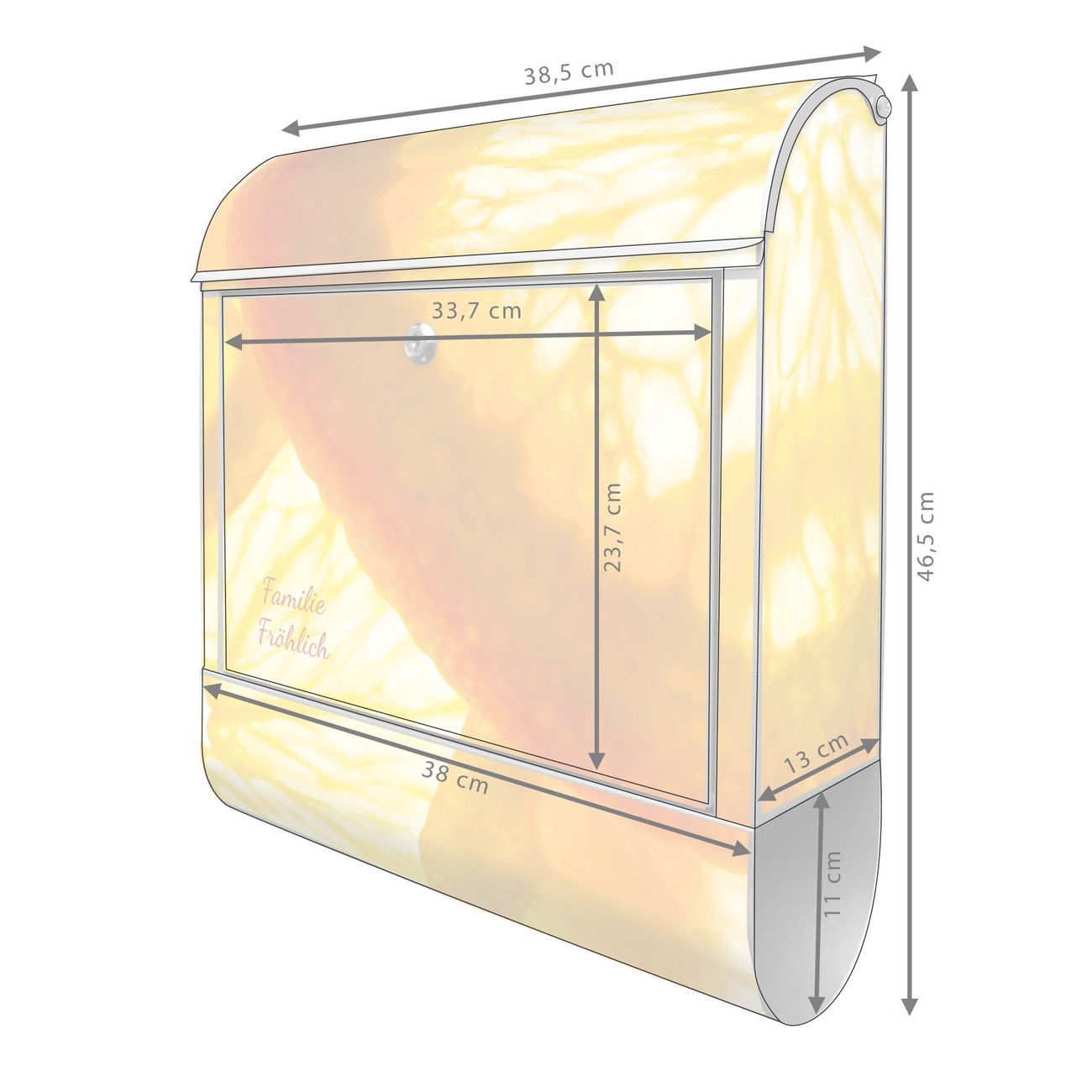 Der Vorschau-Text Familie Fröhlich wird durch Ihren persönlichen Wunschtext ersetzt. Die Schriftart und Farbe bleiben gleich wie in der Vorschau.
