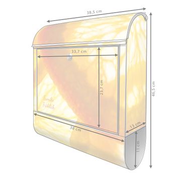 DESIGN: Der Postkasten mit Motiv Motiv Zitrusfrüchte hat ein sehr ansprechendes und ausgefallenes Design, damit entlocken Sie Ihren Nachbarn und dem Postboten ein Lächeln. Heben Sie Sich von der tristen grauen Masse ab, ohne auf Funktionalität zu verzichten. DETAILS: Der Postkasten besteht aus pulverbeschichtetem Stahl. Er ist 38x46x12,5cm groß. Das Motiv besteht aus einer wetter- und UV-resistenten Folie, die mit einem Schutzlaminat überzogen ist, sodass der Briefkasten zusätzlich vor Kratzern geschützt ist. Der Briefkasten wird mit Montagematerial, zusätzlich zwei Schlüssel sowie einer Bohrschablone geliefert. NUTZEN: Sie können diesen Briefkasten sowohl als Wandbriefkasten montieren oder einen passenden Ständer kaufen und als Standbriefkasten einbetonieren. Die Größe bietet genügend Platz für Sendungen aller Art, der Einwurf fasst auch größere A4 Sendungen. BANJADO: Ihr Briefkasten wird in Sachsen in einer kleinen Manufaktur von Hand veredelt. Die Motivfolie ist lösungsmittelfrei und schutzlaminiert für einen langen Halt. Wir legen großen Wert auf die Verbindung von Funktionalität und Design. Sie erhalten Handarbeit aus Sachsen.