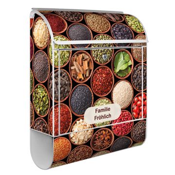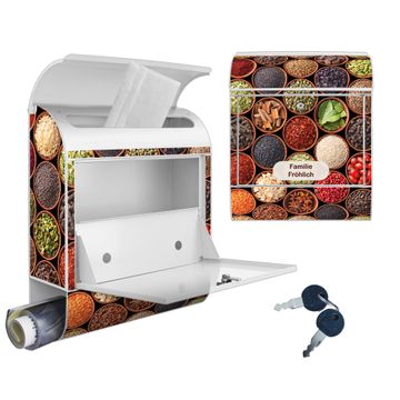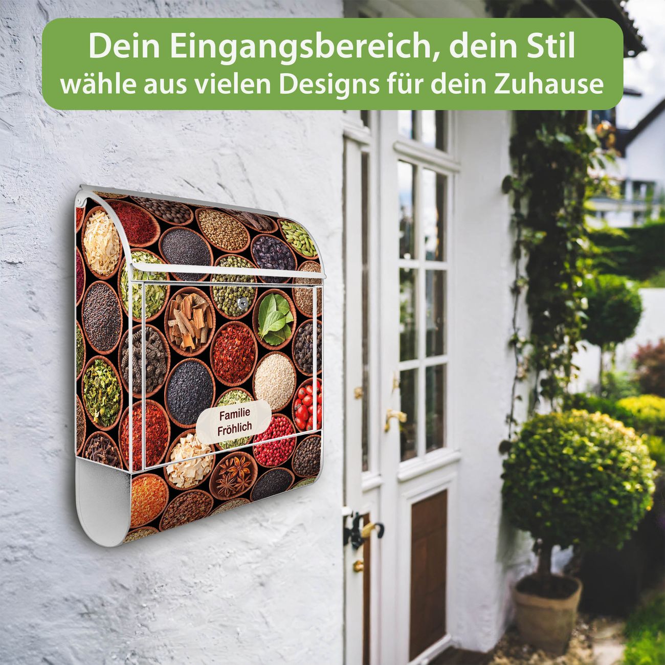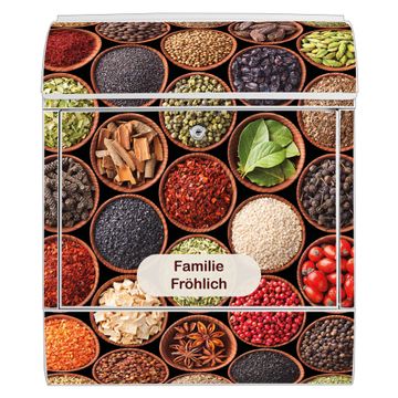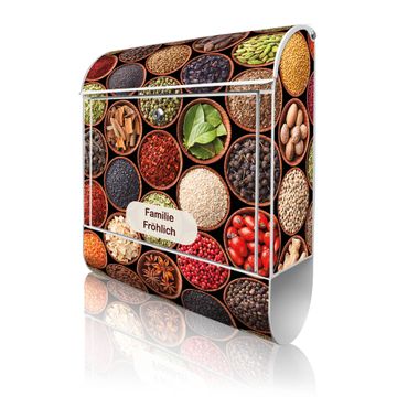 DESIGN: Der Postkasten mit Motiv Motiv Zutaten hat ein sehr ansprechendes und ausgefallenes Design, damit entlocken Sie Ihren Nachbarn und dem Postboten ein Lächeln. Heben Sie Sich von der tristen grauen Masse ab, ohne auf Funktionalität zu verzichten. DETAILS: Der Postkasten besteht aus pulverbeschichtetem Stahl. Er ist 38x46x12,5cm groß. Das Motiv besteht aus einer wetter- und UV-resistenten Folie, die mit einem Schutzlaminat überzogen ist, sodass der Briefkasten zusätzlich vor Kratzern geschützt ist. Der Briefkasten wird mit Montagematerial, zusätzlich zwei Schlüssel sowie einer Bohrschablone geliefert. NUTZEN: Sie können diesen Briefkasten sowohl als Wandbriefkasten montieren oder einen passenden Ständer kaufen und als Standbriefkasten einbetonieren. Die Größe bietet genügend Platz für Sendungen aller Art, der Einwurf fasst auch größere A4 Sendungen. BANJADO: Ihr Briefkasten wird in Sachsen in einer kleinen Manufaktur von Hand veredelt. Die Motivfolie ist lösungsmittelfrei und schutzlaminiert für einen langen Halt. Wir legen großen Wert auf die Verbindung von Funktionalität und Design. Sie erhalten Handarbeit aus Sachsen.