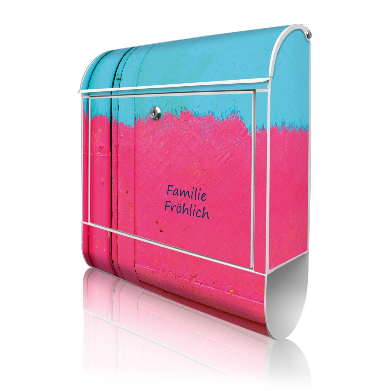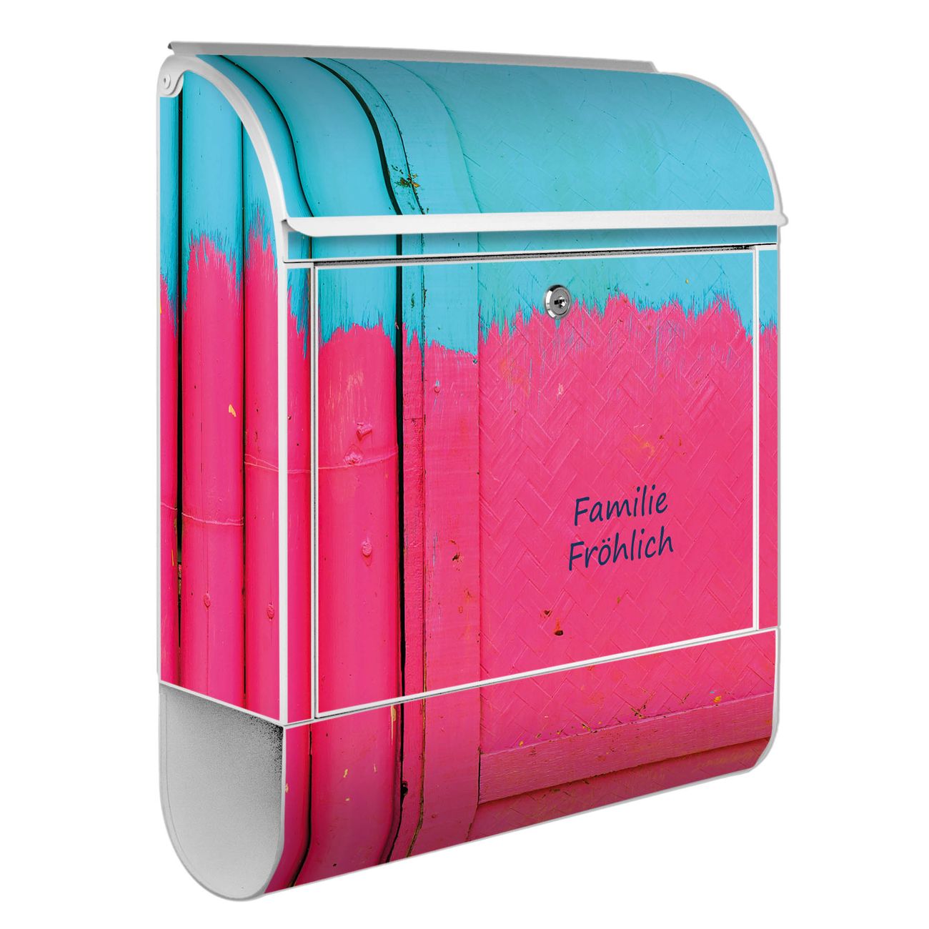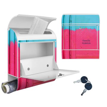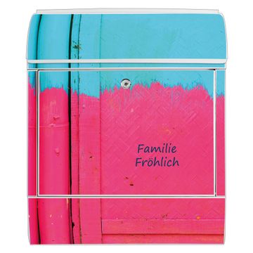 DESIGN: Der Postkasten mit Motiv Motiv Zwei Farben hat ein sehr ansprechendes und ausgefallenes Design, damit entlocken Sie Ihren Nachbarn und dem Postboten ein Lächeln. Heben Sie Sich von der tristen grauen Masse ab, ohne auf Funktionalität zu verzichten. DETAILS: Der Postkasten besteht aus pulverbeschichtetem Stahl. Er ist 38x46x12,5cm groß. Das Motiv besteht aus einer wetter- und UV-resistenten Folie, die mit einem Schutzlaminat überzogen ist, sodass der Briefkasten zusätzlich vor Kratzern geschützt ist. Der Briefkasten wird mit Montagematerial, zusätzlich zwei Schlüssel sowie einer Bohrschablone geliefert. NUTZEN: Sie können diesen Briefkasten sowohl als Wandbriefkasten montieren oder einen passenden Ständer kaufen und als Standbriefkasten einbetonieren. Die Größe bietet genügend Platz für Sendungen aller Art, der Einwurf fasst auch größere A4 Sendungen. BANJADO: Ihr Briefkasten wird in Sachsen in einer kleinen Manufaktur von Hand veredelt. Die Motivfolie ist lösungsmittelfrei und schutzlaminiert für einen langen Halt. Wir legen großen Wert auf die Verbindung von Funktionalität und Design. Sie erhalten Handarbeit aus Sachsen.