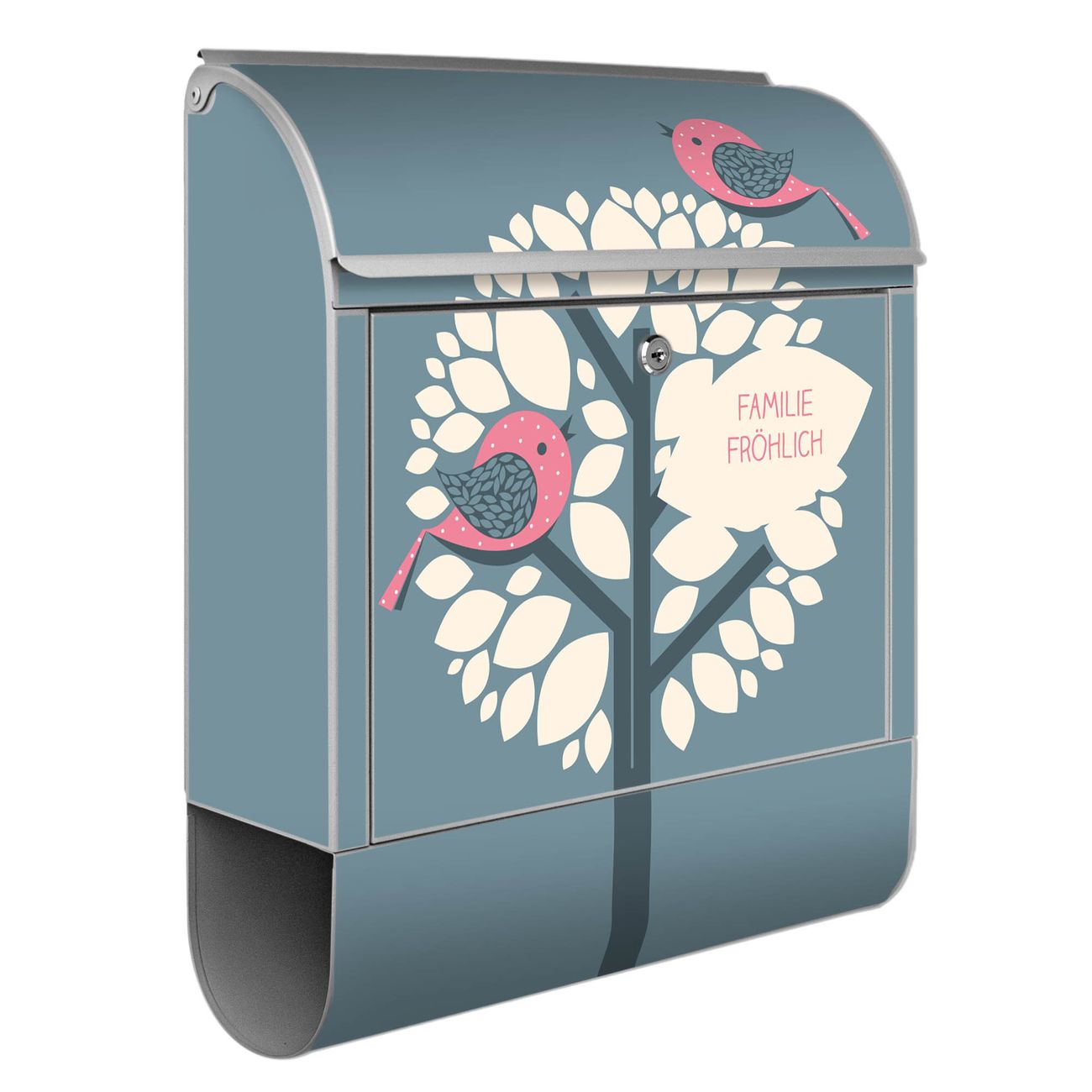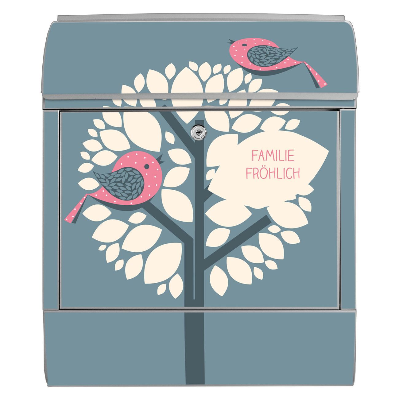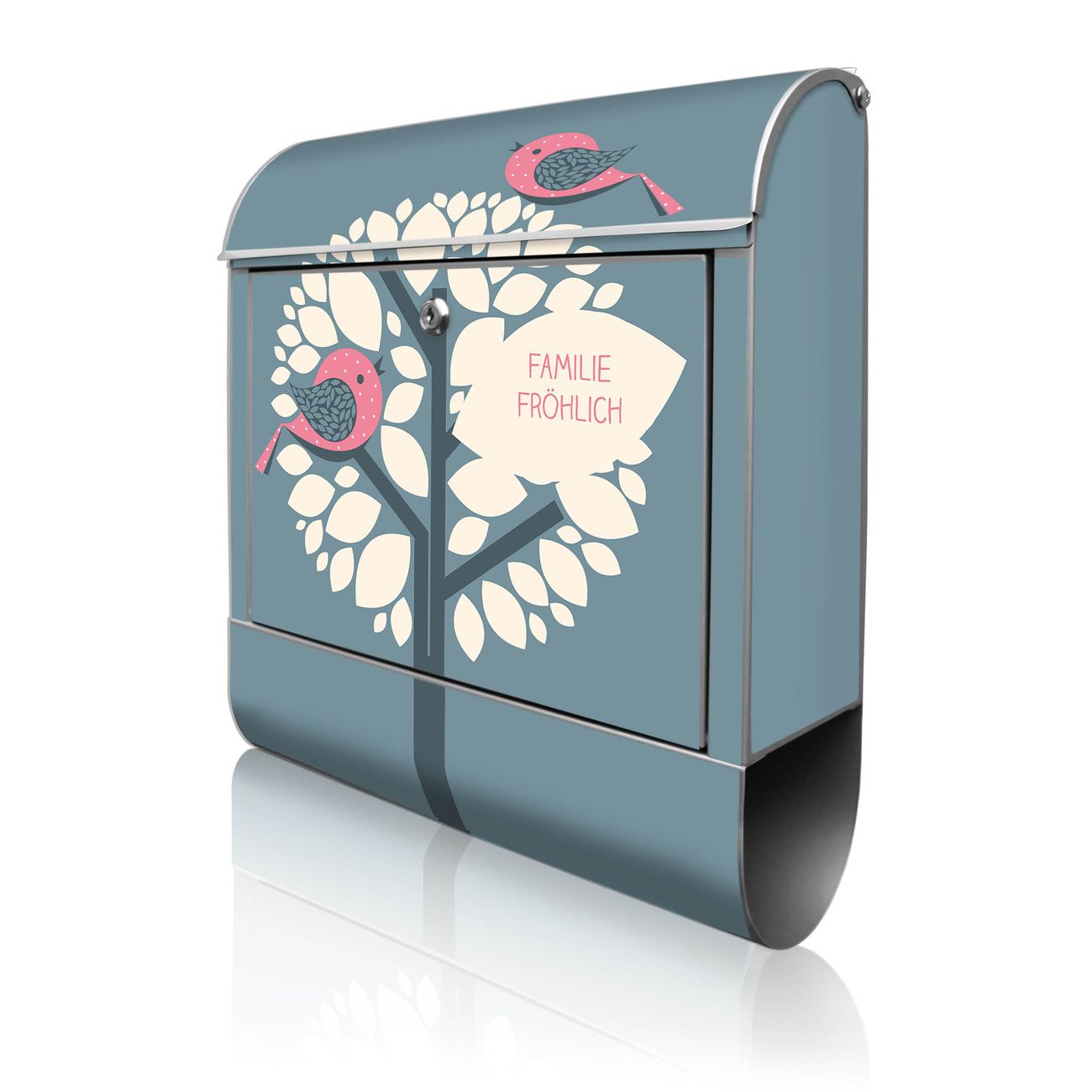 Großer Stahl Briefkasten Motiv Zwei Rosa Vögel