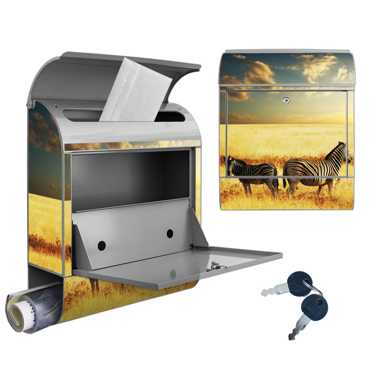Großer Stahl Briefkasten Motiv Zwei Zebras