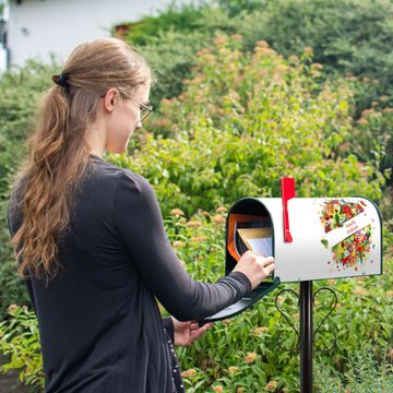 Der amerikanische Briefkasten von banjado mit Sommer Motiv bietet Ihnen ausreichend Fassungsvermögen, um große A4 Sendungen und Zeitschriften zu empfangen. Die typisch amerikanische rote Fahne zeigt Ihnen an, wenn Sie Post erhalten haben. Die US-Mailbox besteht aus verzinktem Stahlblech welches lackiert wurde und ist 48 x 22 x 16 CM (BxHxT) groß. Die Folie mit Motiv Sommer besteht aus einer wetter- und UV-resistenten Folie, die mit einem Schutzlaminat überzogen ist, sodass die US Mailbox zusätzlich vor Kratzern geschützt ist. An der Unterkante sind 4 Löcher je Seite um die Mailbox, typisch amerikanisch, an einem Holzpfahl oder einem Zaun zu befestigen. Auf Wunsch können Sie bei uns den passenden Standfuß oder die passende Wandhalterung kaufen um die US-Mailbox sicher zu befestigen. Wir bieten Ihnen ebenfalls Namensschilder, bereits beschriftet oder frei zu beschriften, und verschiedene selbst gestaltete Bitte-Keine-Werbung-Aufkleber.