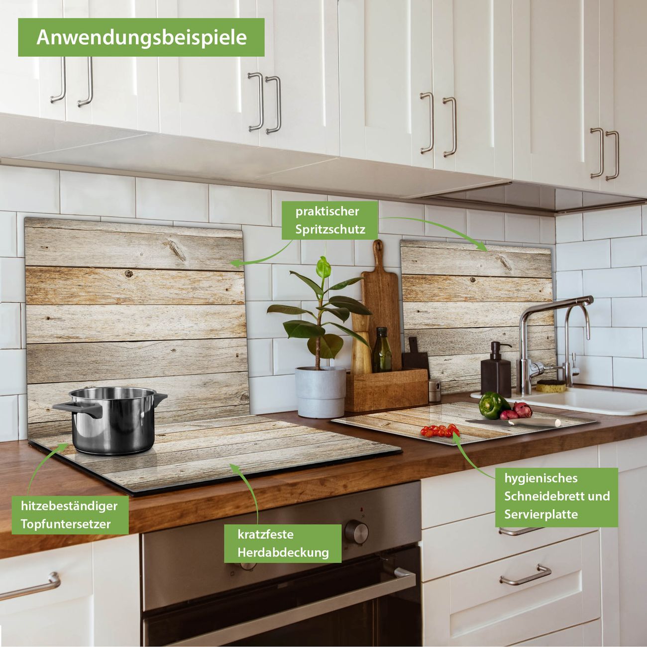 VIELSEITIG: Die Ceranfeldabdeckung ist vielseitig einsetzbar: ob als Spritzschutz hinter dem Herd für Ihre Küche oder als Glas Schneidebrett als hygienische und geruchsneutrale Unterlage. Sie können ebenfalls heiße Töpfe und Pfannen bis 100°C auf der Herdplattenabdeckung abstellen. Sie erhalten ein Multitalent für Ihre Küche. Die banjado Herdabdeckplatte aus Glas mit Motiv Graues Holz verdeckt mit einem schönen Motiv Ihr Ceranfeld bzw. Ihren Induktionsherd. Die Herdabdeckplatte ist vielseitig einsetzbar und passt sich dabei Ihrem Einrichtungsstil an. DESIGN: Die Herdabdeckung Graues Holz besteht aus hochwertigem, gehärtetem Glas mit einem unserer zahlreichen Motive. Sie haben die Wahl zwischen verschiedenen Maßen von einteiligen, zweiteiligen und einer dreiteiligen Herdabdeckung. Wählen Sie was zu Ihrer Einrichtung passt! DETAILS: Die Herdabdeckplatte ist vielseitig einsetzbar. Die Ecken sind für mehr Sicherheit dezent abgerundet, das Glas ist gehärtet. Sie erhalten separate Gummi Abstandshalter, damit Ihre Abdeckung rutschfest auf dem Herd steht. Diese können Sie frei positionieren, sodass die Herdabdeckung perfekt auf Ihrem Ceranfeld sitzt. BANJADO: Wir sind ein kleines Team aus dem Herzen von Sachsen und fertigen jeden Artikel nach Bestellung eigens für Sie an. Sie erhalten also keine preiswerte Importware, sondern Handarbeit. Auf Wunsch sind auch andere Farben und Größen möglich, kontakierten Sie uns gern.