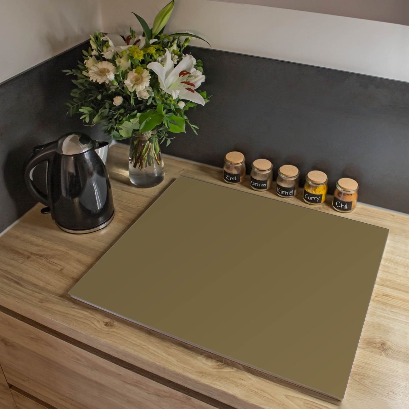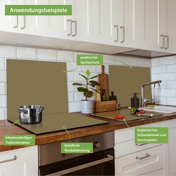 VIELSEITIG: Die Ceranfeldabdeckung ist vielseitig einsetzbar: ob als Spritzschutz hinter dem Herd für Ihre Küche oder als Glas Schneidebrett als hygienische und geruchsneutrale Unterlage. Sie können ebenfalls heiße Töpfe und Pfannen bis 100°C auf der Herdplattenabdeckung abstellen. Sie erhalten ein Multitalent für Ihre Küche. Die banjado Herdabdeckplatte aus Glas mit Farbe Gold Metallic verdeckt mit einem schönen Farbe Ihr Ceranfeld bzw. Ihren Induktionsherd. Die Herdabdeckplatte ist vielseitig einsetzbar und passt sich dabei Ihrem Einrichtungsstil an. DESIGN: Die Herdabdeckung Gold Metallic besteht aus hochwertigem, gehärtetem Glas mit einem unserer zahlreichen Farbee. Sie haben die Wahl zwischen verschiedenen Maßen von einteiligen, zweiteiligen und einer dreiteiligen Herdabdeckung. Wählen Sie was zu Ihrer Einrichtung passt! DETAILS: Die Herdabdeckplatte ist vielseitig einsetzbar. Die Ecken sind für mehr Sicherheit dezent abgerundet, das Glas ist gehärtet. Sie erhalten separate Gummi Abstandshalter, damit Ihre Abdeckung rutschfest auf dem Herd steht. Diese können Sie frei positionieren, sodass die Herdabdeckung perfekt auf Ihrem Ceranfeld sitzt. BANJADO: Wir sind ein kleines Team aus dem Herzen von Sachsen und fertigen jeden Artikel nach Bestellung eigens für Sie an. Sie erhalten also keine preiswerte Importware, sondern Handarbeit. Auf Wunsch sind auch andere Farben und Größen möglich, kontakierten Sie uns gern.