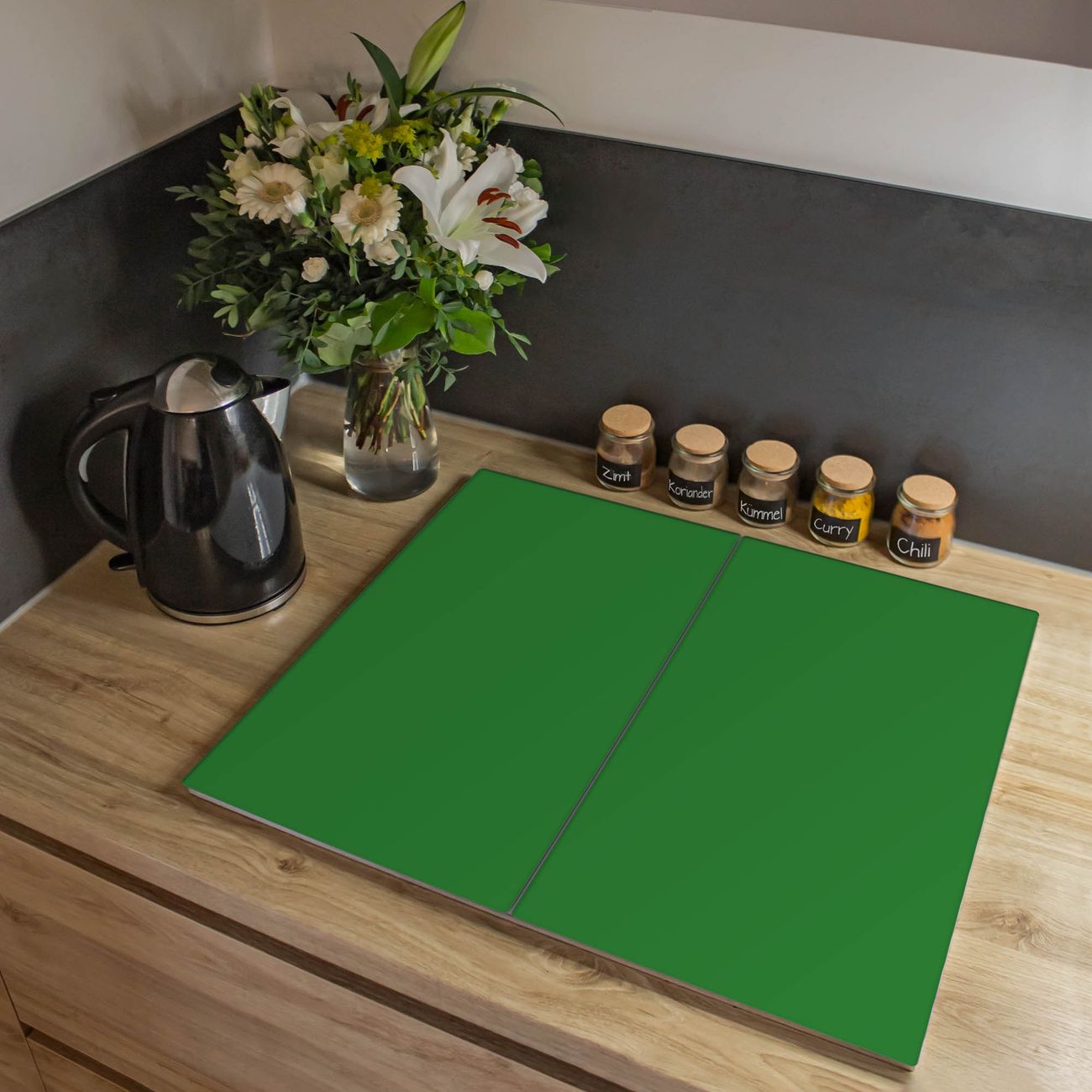 VIELSEITIG: Die Ceranfeldabdeckung ist vielseitig einsetzbar: ob als Spritzschutz hinter dem Herd für Ihre Küche oder als Glas Schneidebrett als hygienische und geruchsneutrale Unterlage. Sie können ebenfalls heiße Töpfe und Pfannen bis 100°C auf der Herdplattenabdeckung abstellen. Sie erhalten ein Multitalent für Ihre Küche. Die banjado Herdabdeckplatte aus Glas mit Farbe Grün verdeckt mit einem schönen Farbe Ihr Ceranfeld bzw. Ihren Induktionsherd. Die Herdabdeckplatte ist vielseitig einsetzbar und passt sich dabei Ihrem Einrichtungsstil an. DESIGN: Die Herdabdeckung Grün besteht aus hochwertigem, gehärtetem Glas mit einem unserer zahlreichen Farbee. Sie haben die Wahl zwischen verschiedenen Maßen von einteiligen, zweiteiligen und einer dreiteiligen Herdabdeckung. Wählen Sie was zu Ihrer Einrichtung passt! DETAILS: Die Herdabdeckplatte ist vielseitig einsetzbar. Die Ecken sind für mehr Sicherheit dezent abgerundet, das Glas ist gehärtet. Sie erhalten separate Gummi Abstandshalter, damit Ihre Abdeckung rutschfest auf dem Herd steht. Diese können Sie frei positionieren, sodass die Herdabdeckung perfekt auf Ihrem Ceranfeld sitzt. BANJADO: Wir sind ein kleines Team aus dem Herzen von Sachsen und fertigen jeden Artikel nach Bestellung eigens für Sie an. Sie erhalten also keine preiswerte Importware, sondern Handarbeit. Auf Wunsch sind auch andere Farben und Größen möglich, kontakierten Sie uns gern.