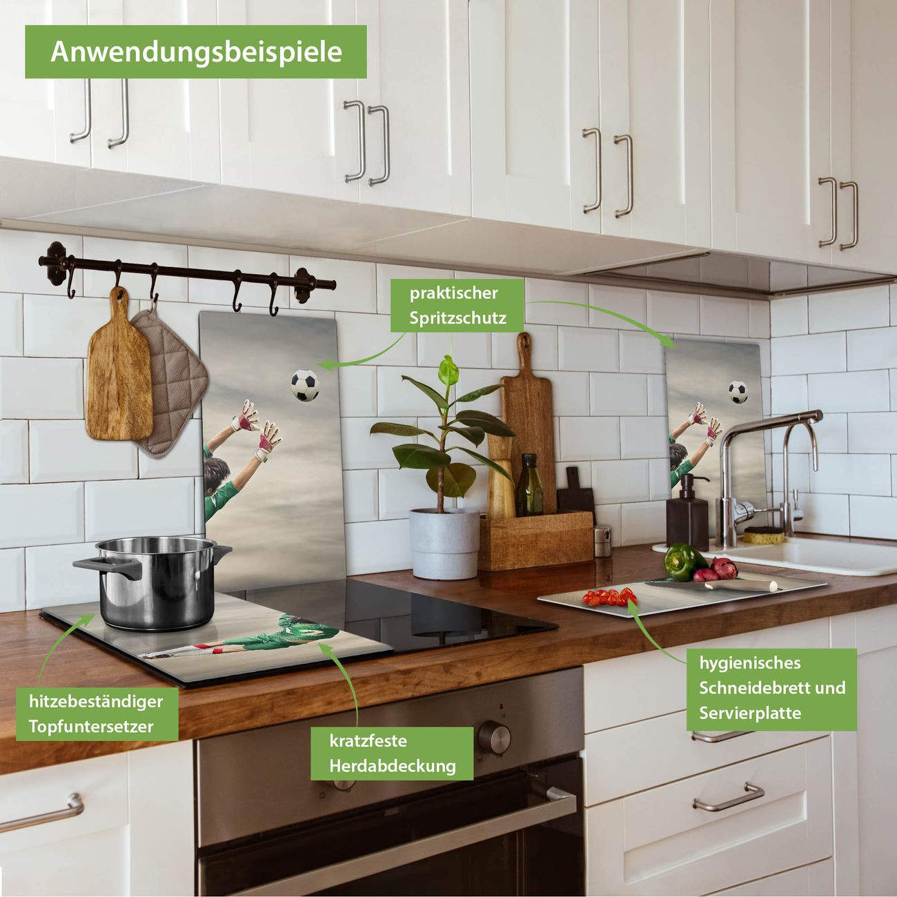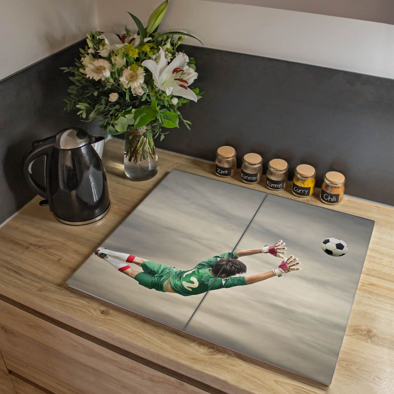 VIELSEITIG: Die Ceranfeldabdeckung ist vielseitig einsetzbar: ob als Spritzschutz hinter dem Herd für Ihre Küche oder als Glas Schneidebrett als hygienische und geruchsneutrale Unterlage. Sie können ebenfalls heiße Töpfe und Pfannen bis 100°C auf der Herdplattenabdeckung abstellen. Sie erhalten ein Multitalent für Ihre Küche. Die banjado Herdabdeckplatte aus Glas mit Motiv Abgewehrt verdeckt mit einem schönen Motiv Ihr Ceranfeld bzw. Ihren Induktionsherd. Die Herdabdeckplatte ist vielseitig einsetzbar und passt sich dabei Ihrem Einrichtungsstil an. DESIGN: Die Herdabdeckung Abgewehrt besteht aus hochwertigem, gehärtetem Glas mit einem unserer zahlreichen Motive. Sie haben die Wahl zwischen verschiedenen Maßen von einteiligen, zweiteiligen und einer dreiteiligen Herdabdeckung. Wählen Sie was zu Ihrer Einrichtung passt! DETAILS: Die Herdabdeckplatte ist vielseitig einsetzbar. Die Ecken sind für mehr Sicherheit dezent abgerundet, das Glas ist gehärtet. Sie erhalten separate Gummi Abstandshalter, damit Ihre Abdeckung rutschfest auf dem Herd steht. Diese können Sie frei positionieren, sodass die Herdabdeckung perfekt auf Ihrem Ceranfeld sitzt. BANJADO: Wir sind ein kleines Team aus dem Herzen von Sachsen und fertigen jeden Artikel nach Bestellung eigens für Sie an. Sie erhalten also keine preiswerte Importware, sondern Handarbeit. Auf Wunsch sind auch andere Farben und Größen möglich, kontakierten Sie uns gern.