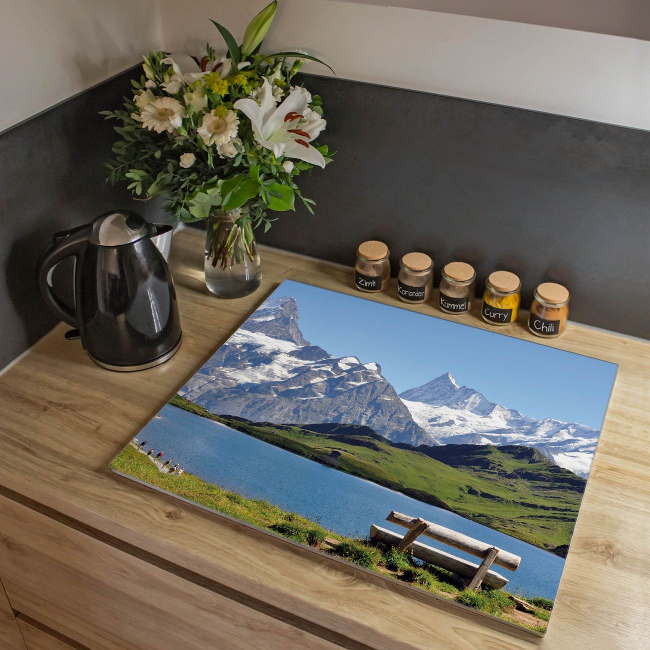 VIELSEITIG: Die Ceranfeldabdeckung ist vielseitig einsetzbar: ob als Spritzschutz hinter dem Herd für Ihre Küche oder als Glas Schneidebrett als hygienische und geruchsneutrale Unterlage. Sie können ebenfalls heiße Töpfe und Pfannen bis 100°C auf der Herdplattenabdeckung abstellen. Sie erhalten ein Multitalent für Ihre Küche. Die banjado Herdabdeckplatte aus Glas mit Motiv Alpen verdeckt mit einem schönen Motiv Ihr Ceranfeld bzw. Ihren Induktionsherd. Die Herdabdeckplatte ist vielseitig einsetzbar und passt sich dabei Ihrem Einrichtungsstil an. DESIGN: Die Herdabdeckung Alpen besteht aus hochwertigem, gehärtetem Glas mit einem unserer zahlreichen Motive. Sie haben die Wahl zwischen verschiedenen Maßen von einteiligen, zweiteiligen und einer dreiteiligen Herdabdeckung. Wählen Sie was zu Ihrer Einrichtung passt! DETAILS: Die Herdabdeckplatte ist vielseitig einsetzbar. Die Ecken sind für mehr Sicherheit dezent abgerundet, das Glas ist gehärtet. Sie erhalten separate Gummi Abstandshalter, damit Ihre Abdeckung rutschfest auf dem Herd steht. Diese können Sie frei positionieren, sodass die Herdabdeckung perfekt auf Ihrem Ceranfeld sitzt. BANJADO: Wir sind ein kleines Team aus dem Herzen von Sachsen und fertigen jeden Artikel nach Bestellung eigens für Sie an. Sie erhalten also keine preiswerte Importware, sondern Handarbeit. Auf Wunsch sind auch andere Farben und Größen möglich, kontakierten Sie uns gern.