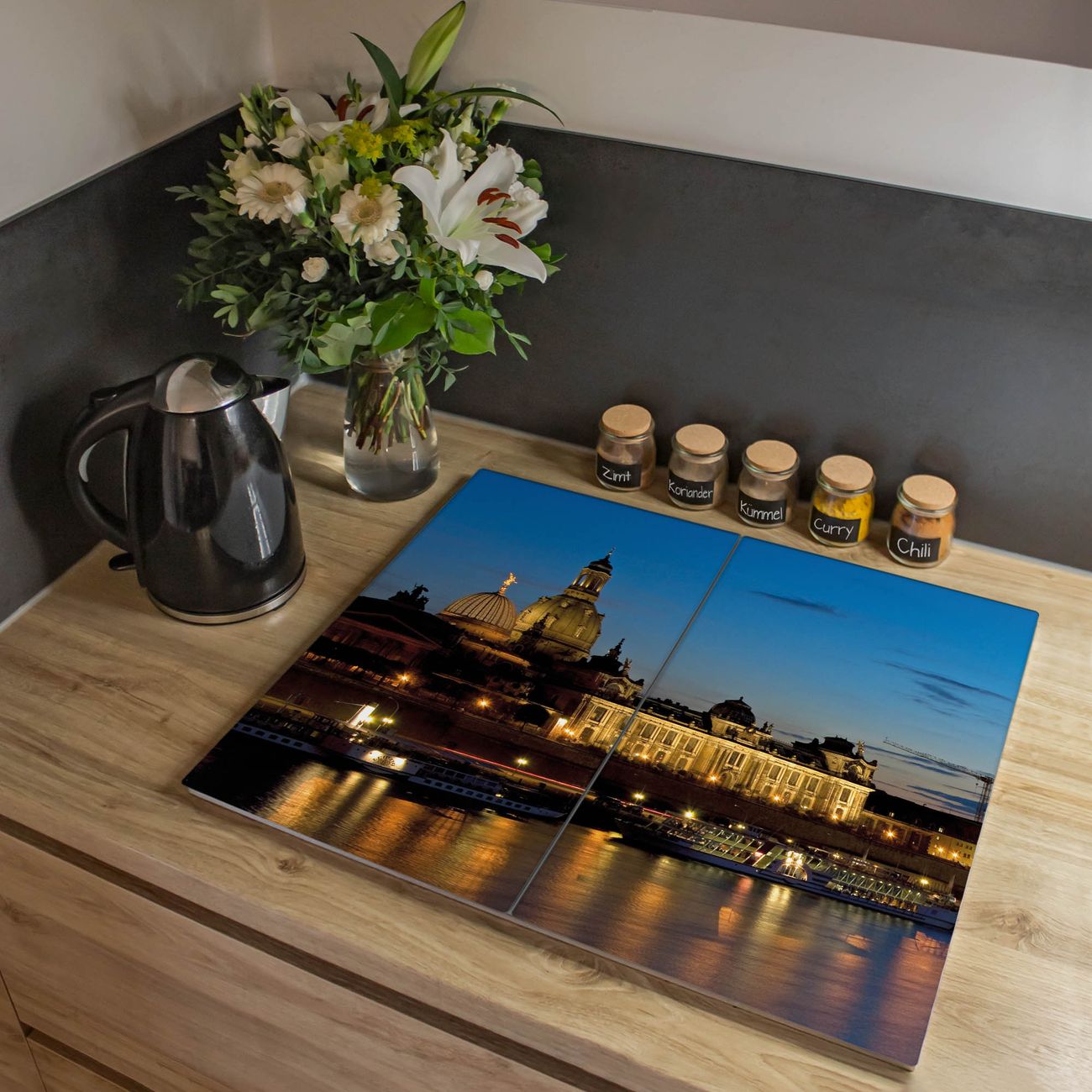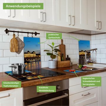 VIELSEITIG: Die Ceranfeldabdeckung ist vielseitig einsetzbar: ob als Spritzschutz hinter dem Herd für Ihre Küche oder als Glas Schneidebrett als hygienische und geruchsneutrale Unterlage. Sie können ebenfalls heiße Töpfe und Pfannen bis 100°C auf der Herdplattenabdeckung abstellen. Sie erhalten ein Multitalent für Ihre Küche. Die banjado Herdabdeckplatte aus Glas mit Motiv Altstadt Dresden verdeckt mit einem schönen Motiv Ihr Ceranfeld bzw. Ihren Induktionsherd. Die Herdabdeckplatte ist vielseitig einsetzbar und passt sich dabei Ihrem Einrichtungsstil an. DESIGN: Die Herdabdeckung Altstadt Dresden besteht aus hochwertigem, gehärtetem Glas mit einem unserer zahlreichen Motive. Sie haben die Wahl zwischen verschiedenen Maßen von einteiligen, zweiteiligen und einer dreiteiligen Herdabdeckung. Wählen Sie was zu Ihrer Einrichtung passt! DETAILS: Die Herdabdeckplatte ist vielseitig einsetzbar. Die Ecken sind für mehr Sicherheit dezent abgerundet, das Glas ist gehärtet. Sie erhalten separate Gummi Abstandshalter, damit Ihre Abdeckung rutschfest auf dem Herd steht. Diese können Sie frei positionieren, sodass die Herdabdeckung perfekt auf Ihrem Ceranfeld sitzt. BANJADO: Wir sind ein kleines Team aus dem Herzen von Sachsen und fertigen jeden Artikel nach Bestellung eigens für Sie an. Sie erhalten also keine preiswerte Importware, sondern Handarbeit. Auf Wunsch sind auch andere Farben und Größen möglich, kontakierten Sie uns gern.