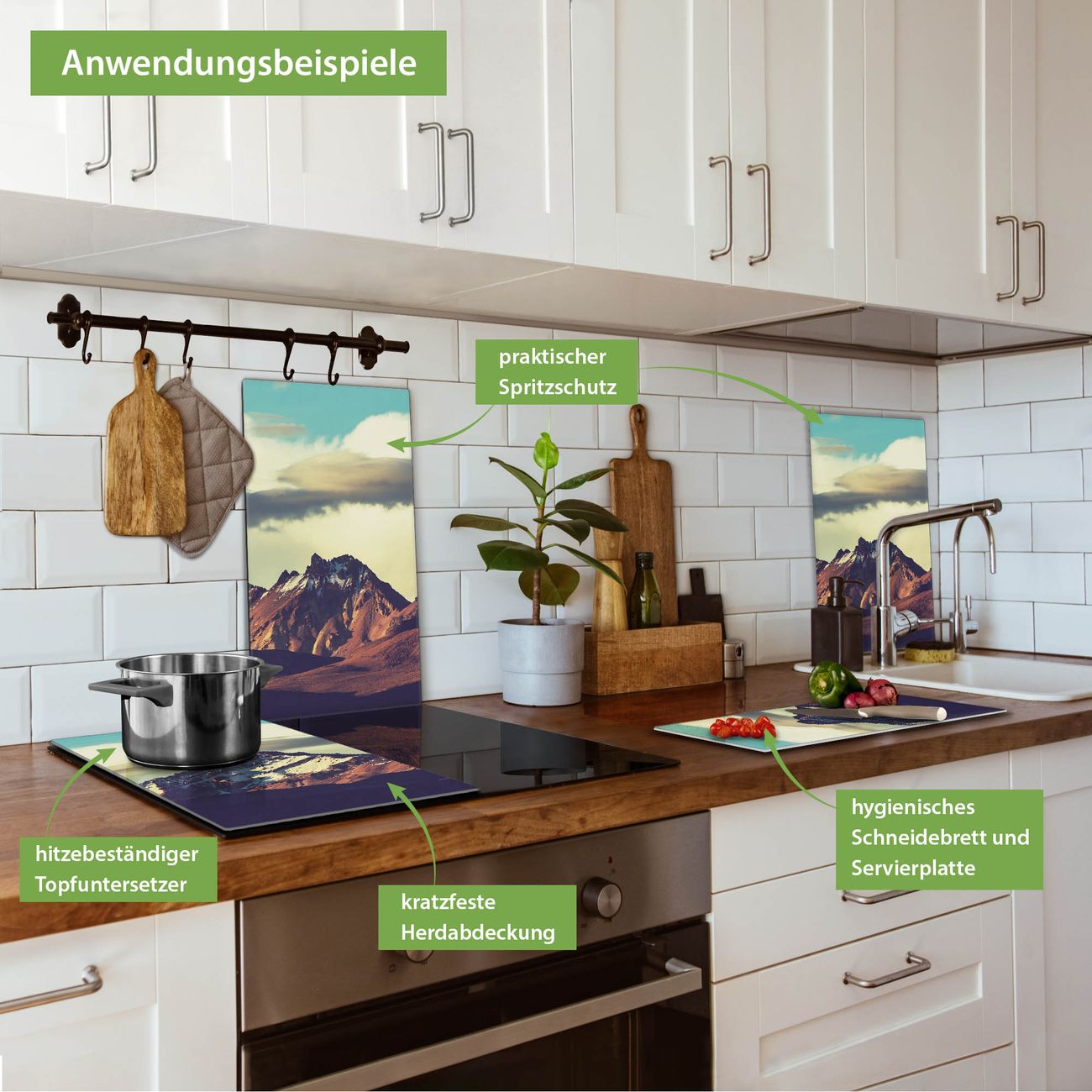 VIELSEITIG: Die Ceranfeldabdeckung ist vielseitig einsetzbar: ob als Spritzschutz hinter dem Herd für Ihre Küche oder als Glas Schneidebrett als hygienische und geruchsneutrale Unterlage. Sie können ebenfalls heiße Töpfe und Pfannen bis 100°C auf der Herdplattenabdeckung abstellen. Sie erhalten ein Multitalent für Ihre Küche. Die banjado Herdabdeckplatte aus Glas mit Motiv Anden verdeckt mit einem schönen Motiv Ihr Ceranfeld bzw. Ihren Induktionsherd. Die Herdabdeckplatte ist vielseitig einsetzbar und passt sich dabei Ihrem Einrichtungsstil an. DESIGN: Die Herdabdeckung Anden besteht aus hochwertigem, gehärtetem Glas mit einem unserer zahlreichen Motive. Sie haben die Wahl zwischen verschiedenen Maßen von einteiligen, zweiteiligen und einer dreiteiligen Herdabdeckung. Wählen Sie was zu Ihrer Einrichtung passt! DETAILS: Die Herdabdeckplatte ist vielseitig einsetzbar. Die Ecken sind für mehr Sicherheit dezent abgerundet, das Glas ist gehärtet. Sie erhalten separate Gummi Abstandshalter, damit Ihre Abdeckung rutschfest auf dem Herd steht. Diese können Sie frei positionieren, sodass die Herdabdeckung perfekt auf Ihrem Ceranfeld sitzt. BANJADO: Wir sind ein kleines Team aus dem Herzen von Sachsen und fertigen jeden Artikel nach Bestellung eigens für Sie an. Sie erhalten also keine preiswerte Importware, sondern Handarbeit. Auf Wunsch sind auch andere Farben und Größen möglich, kontakierten Sie uns gern.
