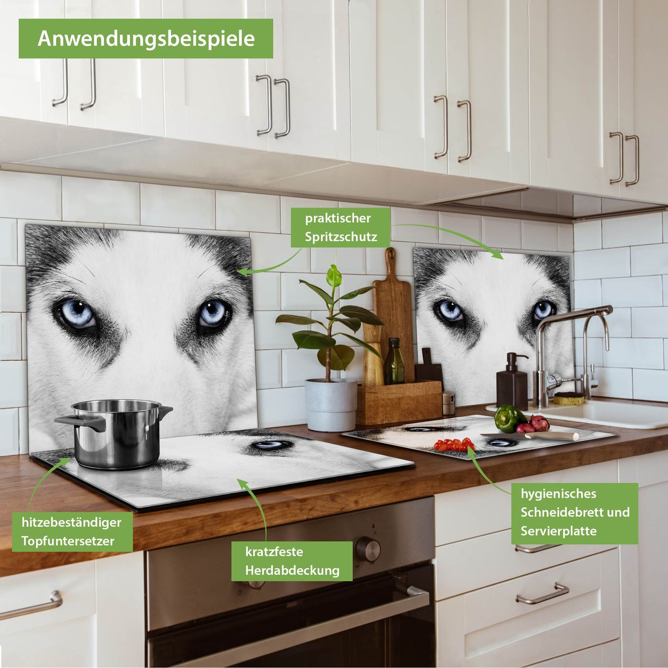 VIELSEITIG: Die Ceranfeldabdeckung ist vielseitig einsetzbar: ob als Spritzschutz hinter dem Herd für Ihre Küche oder als Glas Schneidebrett als hygienische und geruchsneutrale Unterlage. Sie können ebenfalls heiße Töpfe und Pfannen bis 100°C auf der Herdplattenabdeckung abstellen. Sie erhalten ein Multitalent für Ihre Küche. Die banjado Herdabdeckplatte aus Glas mit Motiv Anouk verdeckt mit einem schönen Motiv Ihr Ceranfeld bzw. Ihren Induktionsherd. Die Herdabdeckplatte ist vielseitig einsetzbar und passt sich dabei Ihrem Einrichtungsstil an. DESIGN: Die Herdabdeckung Anouk besteht aus hochwertigem, gehärtetem Glas mit einem unserer zahlreichen Motive. Sie haben die Wahl zwischen verschiedenen Maßen von einteiligen, zweiteiligen und einer dreiteiligen Herdabdeckung. Wählen Sie was zu Ihrer Einrichtung passt! DETAILS: Die Herdabdeckplatte ist vielseitig einsetzbar. Die Ecken sind für mehr Sicherheit dezent abgerundet, das Glas ist gehärtet. Sie erhalten separate Gummi Abstandshalter, damit Ihre Abdeckung rutschfest auf dem Herd steht. Diese können Sie frei positionieren, sodass die Herdabdeckung perfekt auf Ihrem Ceranfeld sitzt. BANJADO: Wir sind ein kleines Team aus dem Herzen von Sachsen und fertigen jeden Artikel nach Bestellung eigens für Sie an. Sie erhalten also keine preiswerte Importware, sondern Handarbeit. Auf Wunsch sind auch andere Farben und Größen möglich, kontakierten Sie uns gern.