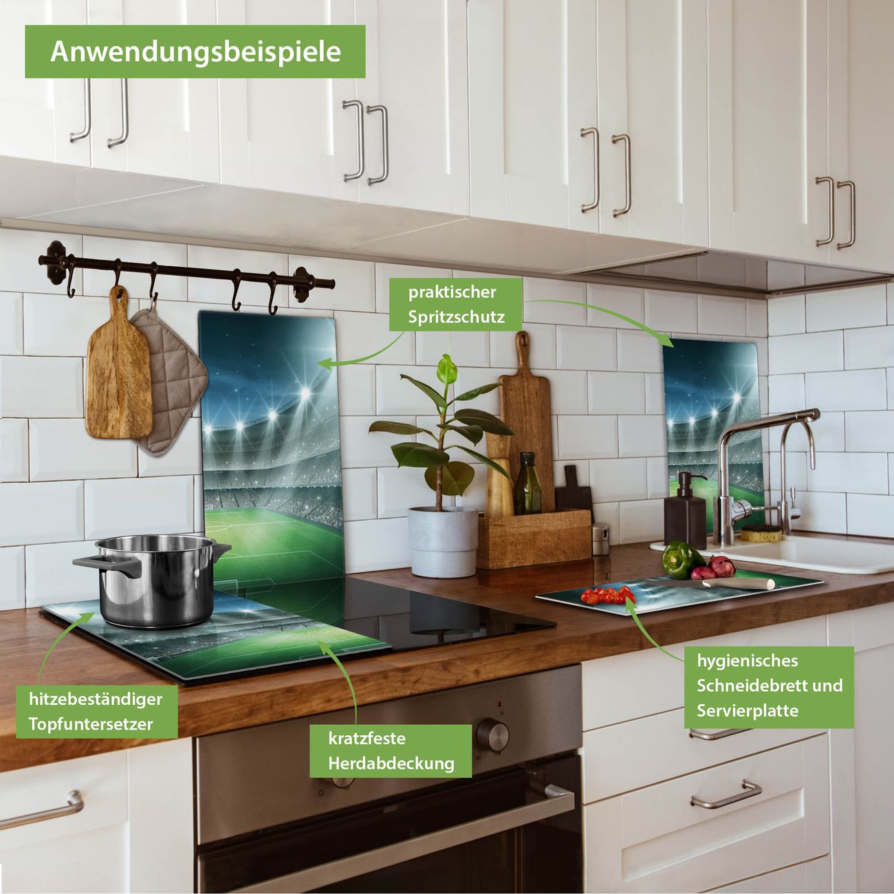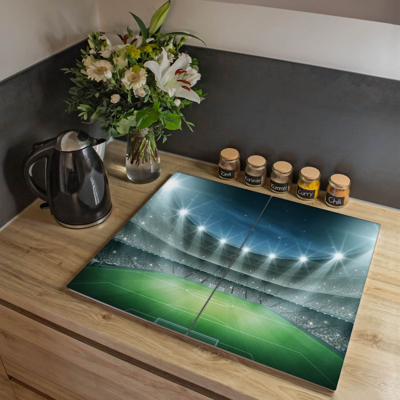 VIELSEITIG: Die Ceranfeldabdeckung ist vielseitig einsetzbar: ob als Spritzschutz hinter dem Herd für Ihre Küche oder als Glas Schneidebrett als hygienische und geruchsneutrale Unterlage. Sie können ebenfalls heiße Töpfe und Pfannen bis 100°C auf der Herdplattenabdeckung abstellen. Sie erhalten ein Multitalent für Ihre Küche. Die banjado Herdabdeckplatte aus Glas mit Motiv Arena verdeckt mit einem schönen Motiv Ihr Ceranfeld bzw. Ihren Induktionsherd. Die Herdabdeckplatte ist vielseitig einsetzbar und passt sich dabei Ihrem Einrichtungsstil an. DESIGN: Die Herdabdeckung Arena besteht aus hochwertigem, gehärtetem Glas mit einem unserer zahlreichen Motive. Sie haben die Wahl zwischen verschiedenen Maßen von einteiligen, zweiteiligen und einer dreiteiligen Herdabdeckung. Wählen Sie was zu Ihrer Einrichtung passt! DETAILS: Die Herdabdeckplatte ist vielseitig einsetzbar. Die Ecken sind für mehr Sicherheit dezent abgerundet, das Glas ist gehärtet. Sie erhalten separate Gummi Abstandshalter, damit Ihre Abdeckung rutschfest auf dem Herd steht. Diese können Sie frei positionieren, sodass die Herdabdeckung perfekt auf Ihrem Ceranfeld sitzt. BANJADO: Wir sind ein kleines Team aus dem Herzen von Sachsen und fertigen jeden Artikel nach Bestellung eigens für Sie an. Sie erhalten also keine preiswerte Importware, sondern Handarbeit. Auf Wunsch sind auch andere Farben und Größen möglich, kontakierten Sie uns gern.