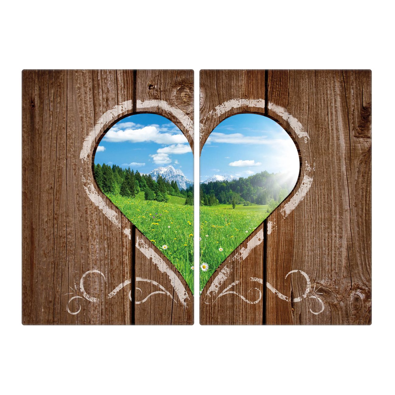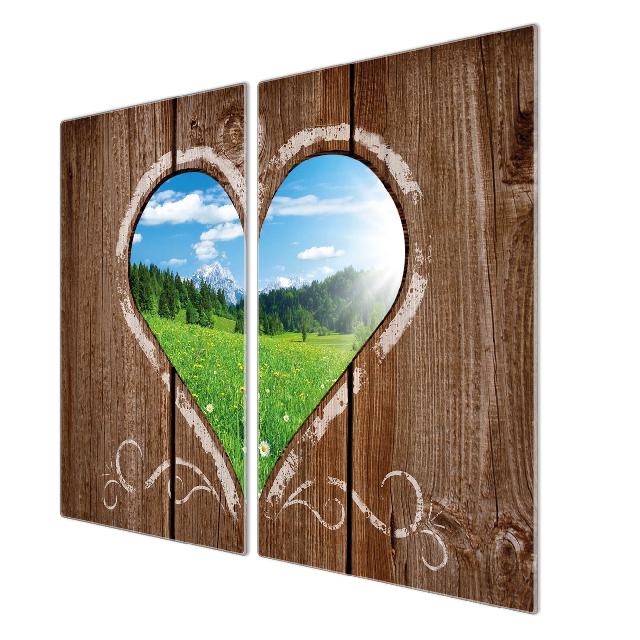 Herdabdeckplatte 1, 2 und 3 teilig Motiv Ausblick mit Herz