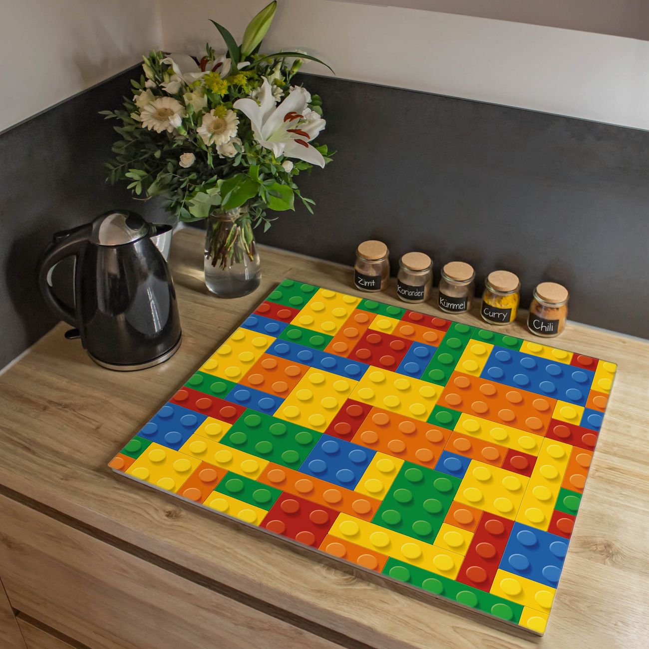 Herdabdeckplatte 1, 2 und 3 teilig Motiv Bausteine