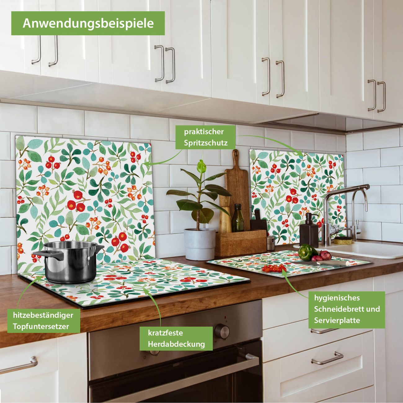 Herdabdeckplatte 1, 2 und 3 teilig Motiv Beeren und Blätter