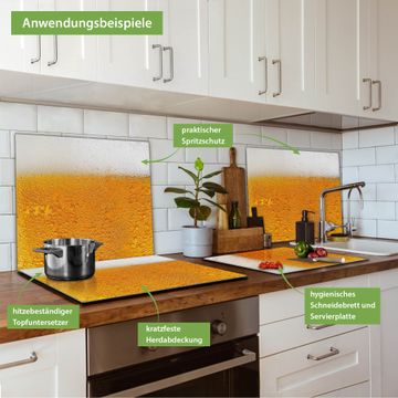 VIELSEITIG: Die Ceranfeldabdeckung ist vielseitig einsetzbar: ob als Spritzschutz hinter dem Herd für Ihre Küche oder als Glas Schneidebrett als hygienische und geruchsneutrale Unterlage. Sie können ebenfalls heiße Töpfe und Pfannen bis 100°C auf der Herdplattenabdeckung abstellen. Sie erhalten ein Multitalent für Ihre Küche. Die banjado Herdabdeckplatte aus Glas mit Motiv Bier verdeckt mit einem schönen Motiv Ihr Ceranfeld bzw. Ihren Induktionsherd. Die Herdabdeckplatte ist vielseitig einsetzbar und passt sich dabei Ihrem Einrichtungsstil an. DESIGN: Die Herdabdeckung Bier besteht aus hochwertigem, gehärtetem Glas mit einem unserer zahlreichen Motive. Sie haben die Wahl zwischen verschiedenen Maßen von einteiligen, zweiteiligen und einer dreiteiligen Herdabdeckung. Wählen Sie was zu Ihrer Einrichtung passt! DETAILS: Die Herdabdeckplatte ist vielseitig einsetzbar. Die Ecken sind für mehr Sicherheit dezent abgerundet, das Glas ist gehärtet. Sie erhalten separate Gummi Abstandshalter, damit Ihre Abdeckung rutschfest auf dem Herd steht. Diese können Sie frei positionieren, sodass die Herdabdeckung perfekt auf Ihrem Ceranfeld sitzt. BANJADO: Wir sind ein kleines Team aus dem Herzen von Sachsen und fertigen jeden Artikel nach Bestellung eigens für Sie an. Sie erhalten also keine preiswerte Importware, sondern Handarbeit. Auf Wunsch sind auch andere Farben und Größen möglich, kontakierten Sie uns gern.